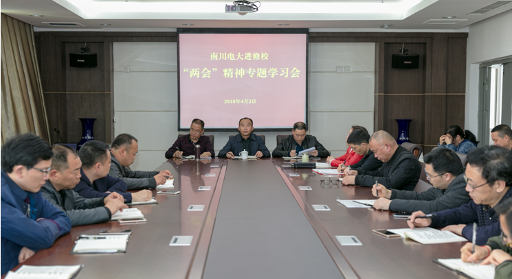【供稿/周洪伟】4月2日,南川分校召开了两会精神专题学习会,传达贯彻十三届全国人大一次会议和全国政协十三届一次会议精神,学习领会习近平总书记在全国两会期间的一系列重要讲话精神。会议由学校党委书记校长张建华主持,全体教职工参加了学习讨论。