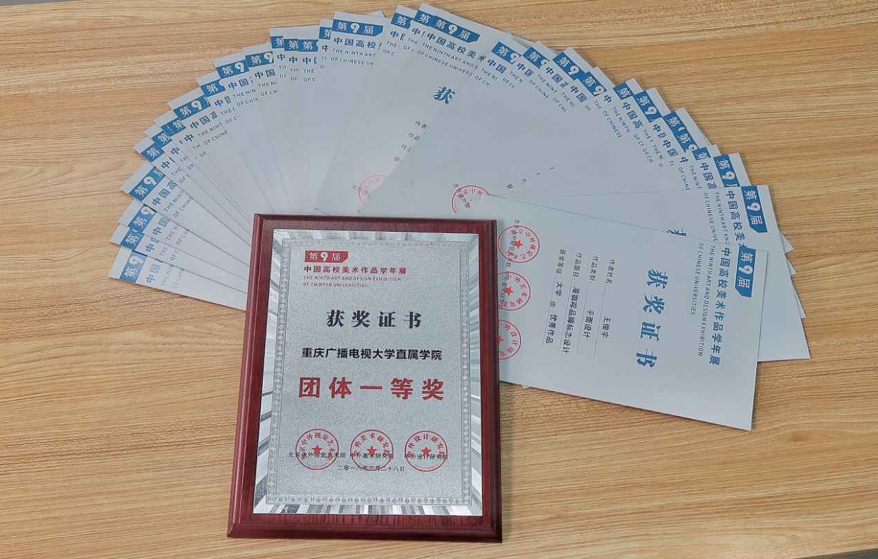 2018年第九届中国高校美术作品学年展由中国高校美术作品学年展组委会、北京中外视觉艺术院主办,中外美术研究院、中外设计研究院联办,本届学年展共计收到来自清华大学美术学院等千余所高校的有效稿件9318件,其中美术造型类作品4032件,美术设计类作品5286件。直属学院视觉传播设计与制作专业教师郑菊子、杨睿端,宋宇带领的2015、2016级设计专业的同学们和来自全国各大专业院校的学生同台竞争,获奖率约为7%。获奖作品充分代表了当前高校美术与设计创作的最高水准,堪称全国高等院校美术与设计界的国展、国赛。所有获奖作品将收录大型正式出版物《第九届中国高校美术作品学年展•作品集》。