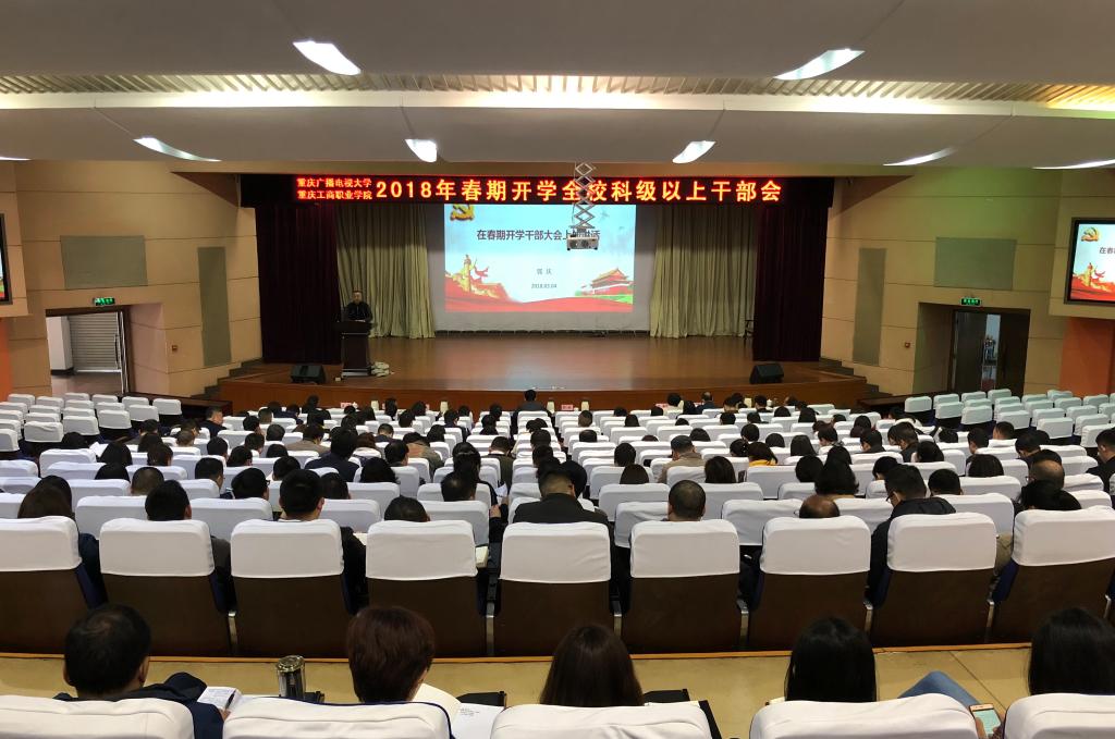 【供稿/宣传部】3月4日,学校在华岩校区召开春期开学全校干部大会。会上,校长李国对2018年整体工作作全面部署和安排,党委书记郭庆对全年工作提出要求。大会由党委副书记周曦主持。
