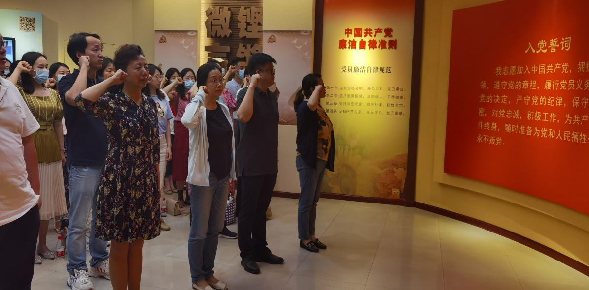 在鲜艳的党旗下,参训纪检干部重温了入党誓词。通过集体宣誓,参训人员更加深刻理解了共产党人的初心和使命,进一步坚定了理想信念,也更加明白了新时代纪检干部身上承担的重大责任和光荣使命。