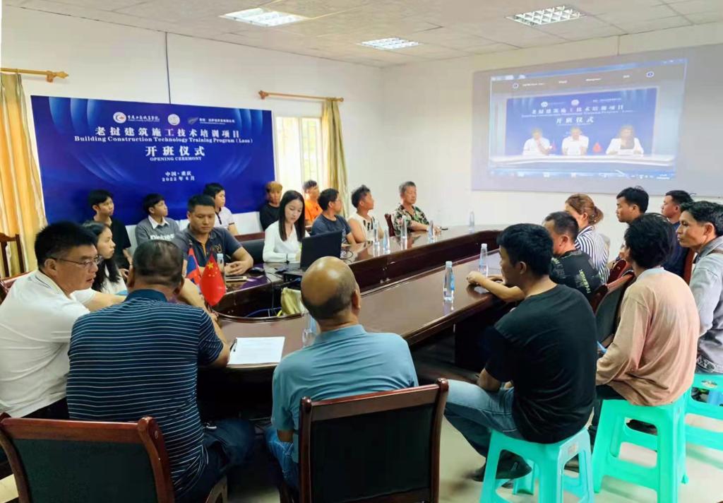 【供稿/国际交流中心】6月13日,我校老挝鲁班工坊“建筑施工技术培训项目”在云端开班。我校副校长江涛,老挝拉萨翁开发有限公司执行董事樊彦,城市建设工程学院党总支书记、院长罗晓良出席活动,授课教师代表及36名老挝学员参加本次活动。