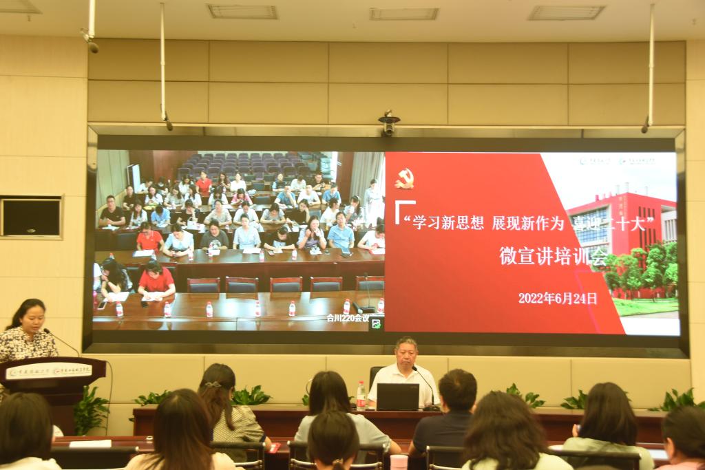【供稿/党委宣传部】6月24日,我校面向全校辅导员、各总支宣传委员、部分思政教师及第二届微宣讲大赛参赛选手,在华岩校区217会议室、合川220会议室集中开展了“学习新思想 展现新作为 喜迎二十大”微宣讲培训。本次培训特邀渝北区委宣讲团成员、区委宣传部二级调研员、“全国基层理论宣讲先进个人”刘文长来校作理论微宣讲工作培训。