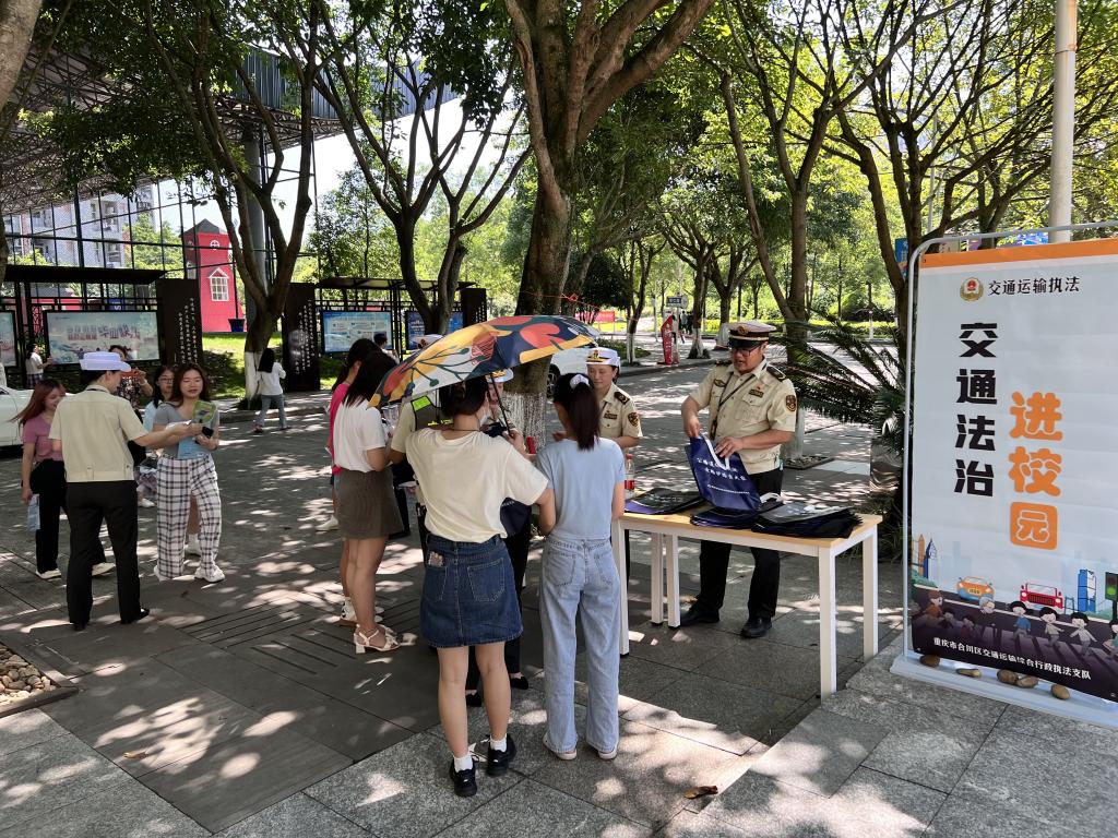 【供稿/机关一党总支】为进一步增强我校师生法治理念和交通安全意识,有效提升广大师生防范和抵御风险的自护能力,全力营造守法规知礼让、安全文明出行的浓厚氛围。在暑期来临之际,6月29日上午,我校保卫部党支部联合合川区交通运输综合行政执法支队,在合川校区开展了“交通安全法制宣传教育”主题党日活动。