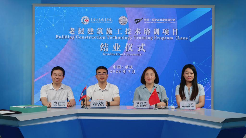 仪式上,江涛副校长代表学校对36名来自老挝建筑行业的全体参训学员圆满完成培训各项任务并顺利取得结业证书表示祝贺。他指出,自中老鲁班工坊成立以来,在校企双方共同努力下,进一步服务在老中资企业“走出去”,有利于深化中老职教领域人文交流与合作。期待双方继续以中老鲁班工坊为基础,积极推动国际产能合作,借助中国优质的职业教育资源和技术标准,以“走出去”企业需求为导向,不断优化“中文+职业技能”培养模式,在双语课程资源开发、行业岗位能力标准制定、技能人才培训等方面持续深化合作,为中老两国不断搭建新的人文交流合作平台和推动打造“中老命运共同体”作出新的积极贡献。