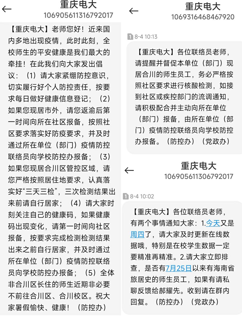 面对突如其来的疫情,学校积极响应合川区党委政府的号召,立即召开疫情防控工作会议,对有关工作进行安排部署,并启动应急响应机制。学校党委要求,要深入贯彻习近平总书记关于疫情防控的重要指示精神,按照市疫情防控工作调度会议有关要求,从严从快抓好疫情应急处置。一是强化信息摸排,按照市、区疾控部门要求,做好重点人员信息摸排,并积极引导师生员工主动配合做好流调溯源;二是加强组织协调,主动与驻地相关部门对接,组织留校师生、校内居住人员、施工人员、物业和安保人员等按要求进行核酸检测,确保不落一户、不漏一人;三是落细疫情登记,督促全校师生按要求进行每日疫情登记,并做好市教委疫情登记系统上线有关准备工作。