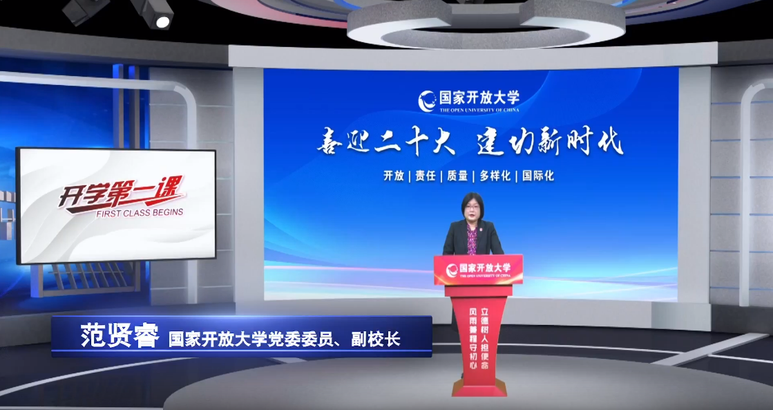 国家开放大学副校长范贤睿以“喜迎二十大,建功新时代”为题,带领全体师生共同开启了2022年秋季学期新航程。身处全国各地的国开大系统数十万师生,通过国家开放大学在线直播课堂等多个网络平台,同步分享了范贤睿副校长的生动讲述。