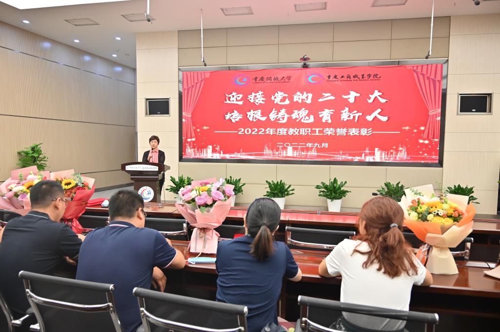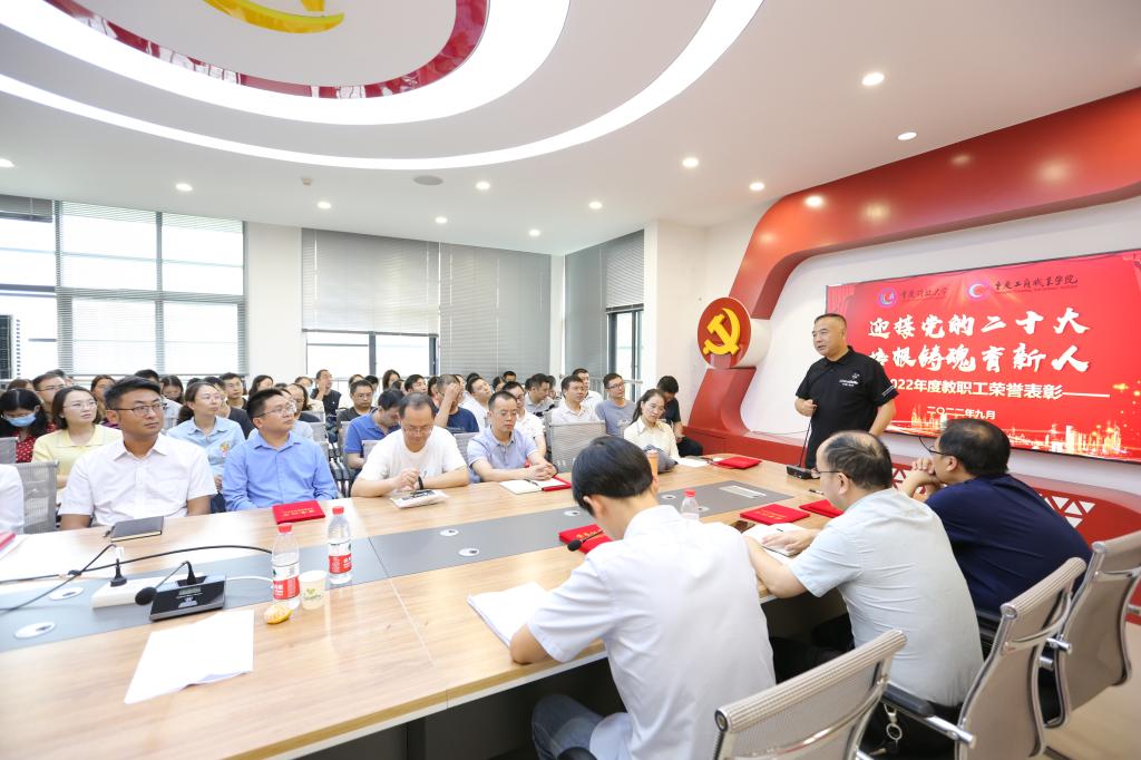 【供稿/党委教工部】金秋九月,硕果盈枝。9月21日下午,学校全体校领导分组出席两校区各二级学院和机关职能部门组织的2022年度教职工荣誉表彰会,向在2022年度取得突出业绩的优秀教职工和在各领域取得重大突破性成果的个人及单位表示祝贺,向辛勤奋战在教学、管理、服务一线的全体教职工表示慰问,向荣休教职工致以诚挚敬意和祝福。