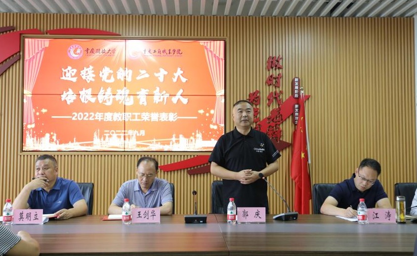 走访慰问中,党委书记郭庆来到智能制造与汽车学院、电子信息工程学院,校长李国来到城市建设工程学院、管理学院,党委副书记周曦来到传媒与设计学院、会计与金融学院、在华岩机关职能部门,副校长胡继明来到开放教育学院,副校长刘昌雄来到在合川机关职能部门,副校长胡方霞来到创新教育学院、教务处,向62名2022年度优秀教职工和在理论研究、技能竞赛、教育教学、师德师风建设等方面取得重大突破成果的6项特别荣誉奖进行了表彰,并向今年荣休的教职工献花,对他们为学校作出的贡献表示肯定和感谢。