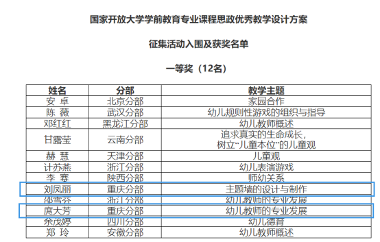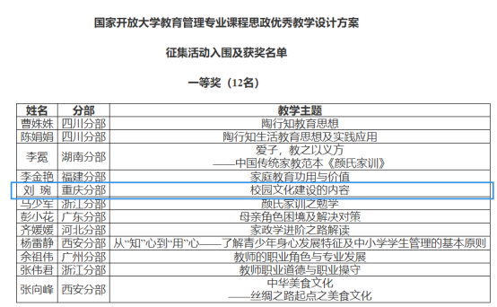 【供稿/远程教育中心】近日,国家开放大学教育类专业课程思政优秀教学设计方案征集活动结果公布。我校多项教师作品入围国家开放大学教育类专业课程思政优秀教学设计方案,并获评一等奖3项、二等奖4项、三等奖4项。我校获优秀组织奖。