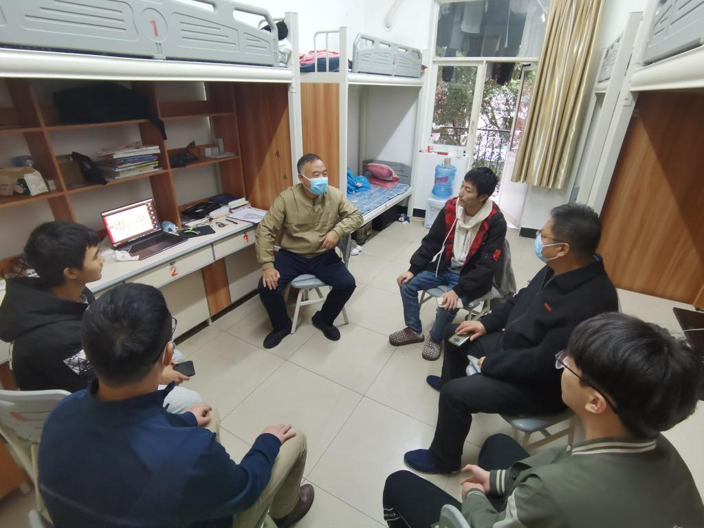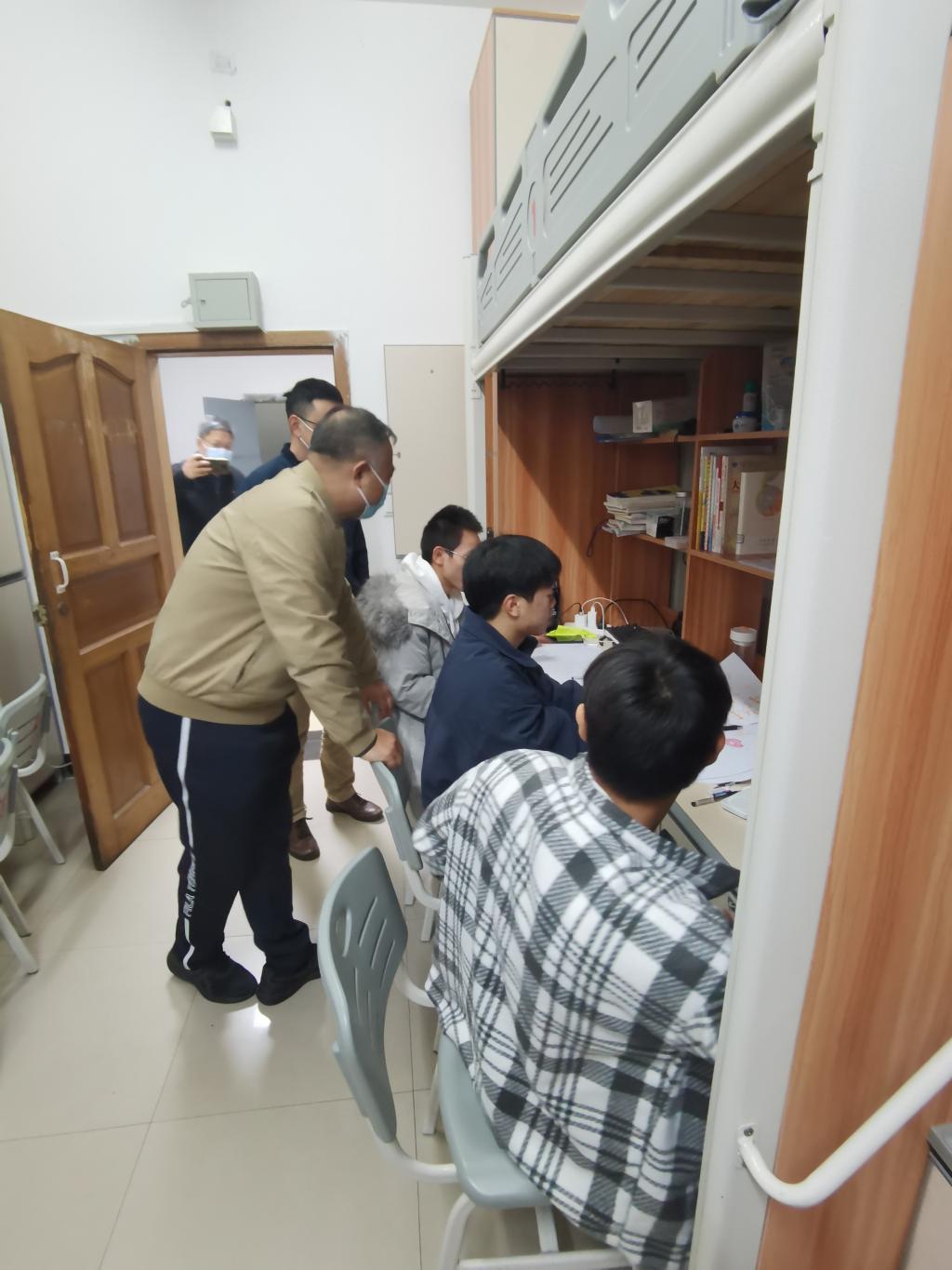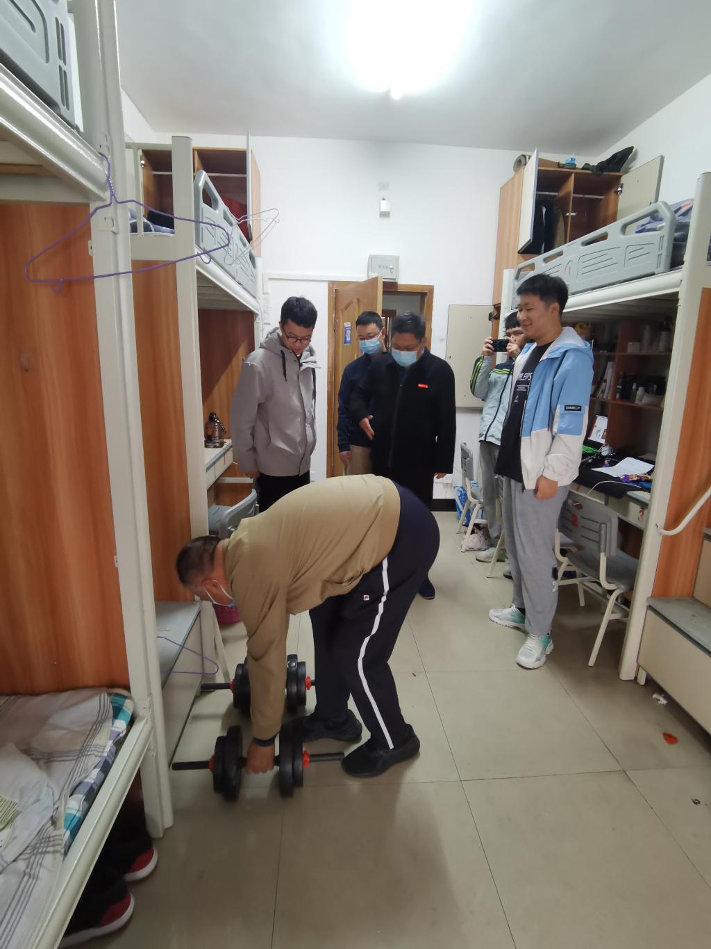 在学生寝室,郭庆书记叮嘱同学们要时刻提高警惕,严格遵守校园疫情防控各项规定,积极做好心理调适,加强时间管理,养成良好学习生活习惯,以更加积极向上的精神面貌对待学习与生活。在了解到同学们即将线上参加《大学生安全教育》课程学习,课前,郭庆书记与同学们亲切交谈,提醒同学们时刻注意个人防护,牢记健康防范知识,遇到困难主动联系辅导员和老师,相信学校会同大家一起面对困难、解决问题。当了解到有同学经常使用健身器材进行健康锻炼时,他号召全校同学积极参加体育运动,提升身体素质,提高抵抗病毒能力。