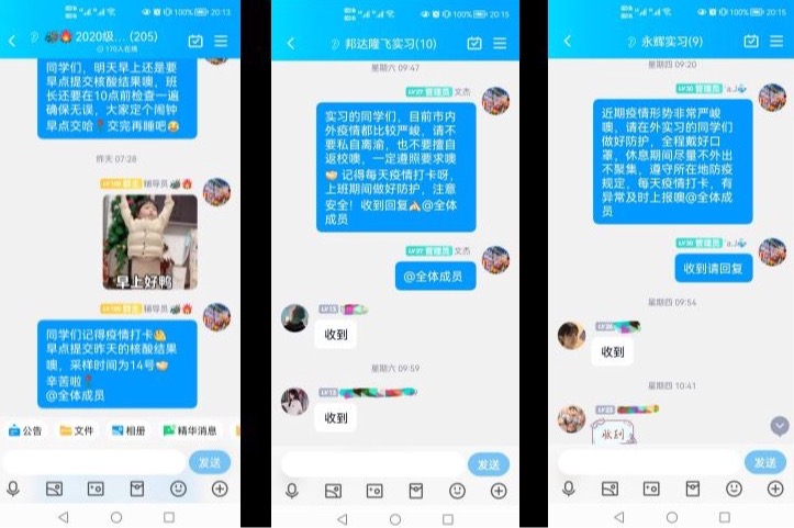 她有193个“孩子”,他们今年大三了。疫情特殊时期,文老师始终保持高度警惕的精神状态。每天睁眼的第一件事,就是打开手机查看最新的工作通知,生怕错误任何一条消息;随后在班群里提醒“孩子们”提交核酸检测结果、按时完成疫情打卡、晨午晚检等;接着填写完成报送每日核酸人数、每日查寝、每日健康打卡人数、每日核酸结果统计等各项表格统计......她担心“孩子们”的在校状态和情绪不好,常常下宿舍走访,耐心引导,缓解他们的求职焦虑。她也担心在校外的“孩子们”,她每个两三天就要发消息询问他们的近况,叮嘱注意安全,切切实实掌握每个学生的情况。