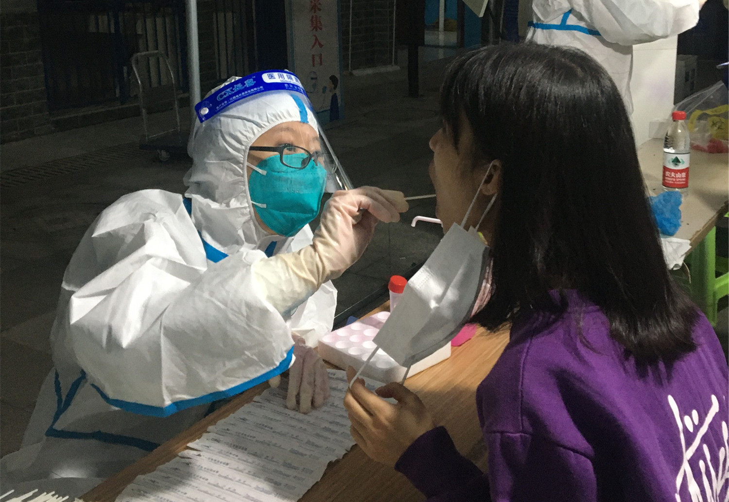 撕开棉签袋,取出棉签,找准位置,左三下,右三下,中后再三下,揭开试管盖,将棉签放入试管中折断,盖上试管盖,洗手消毒……一步一步,他们专业有范儿,从容淡定。