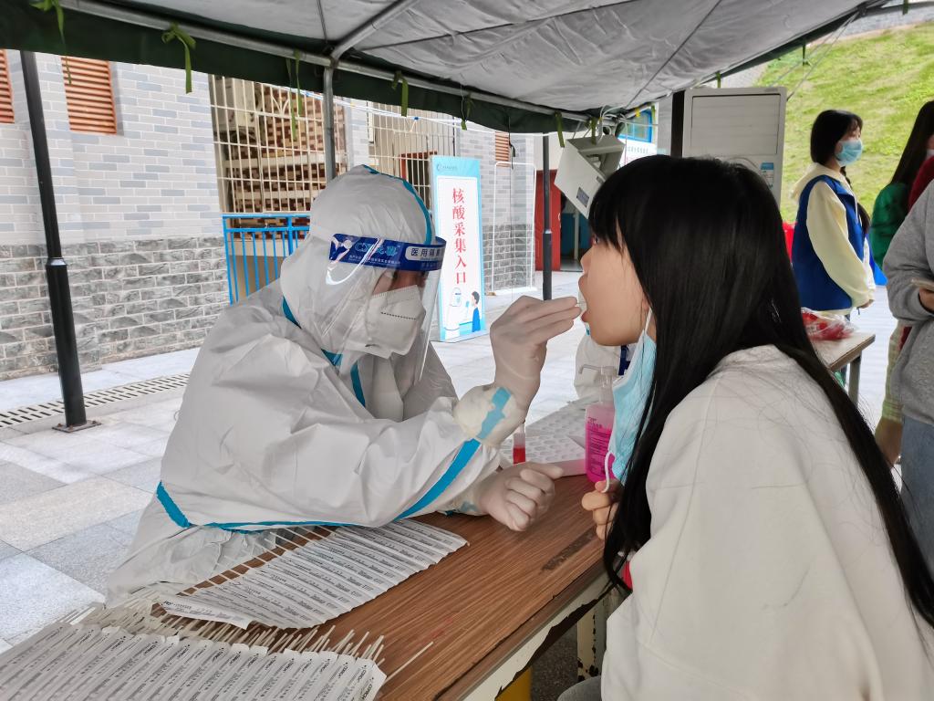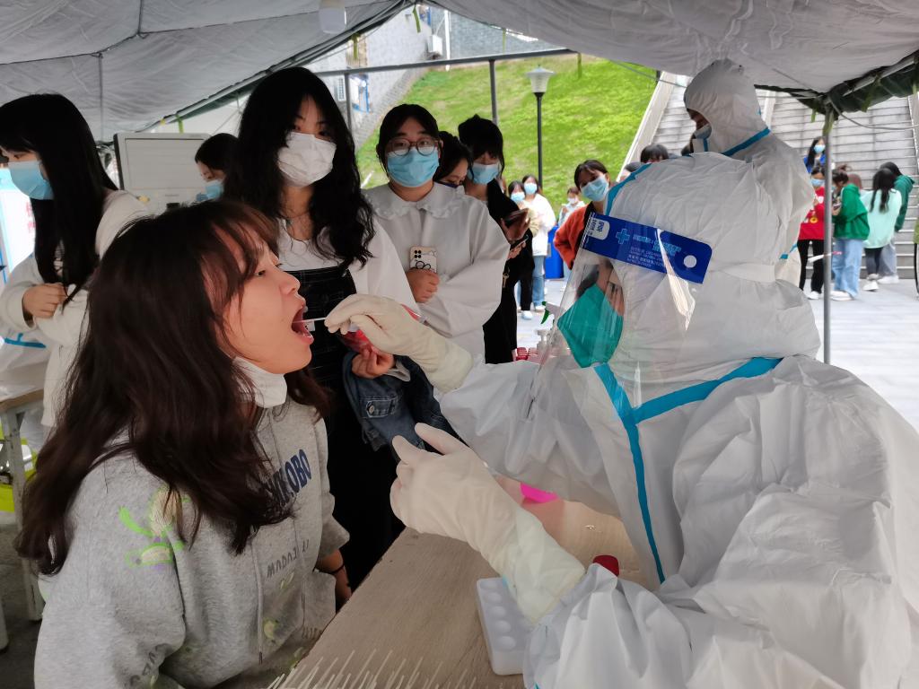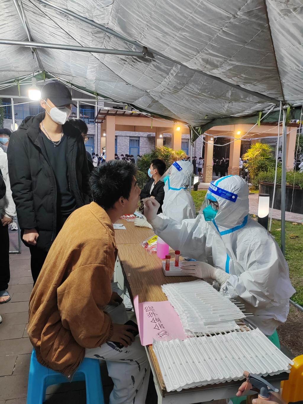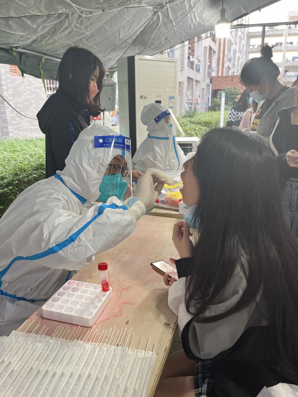 【供稿/党委宣传部】11月19日下午,合川校区核酸检测点秩序井然。14名特殊的“大白”小心翼翼又训练有素地忙着核酸采样工作。