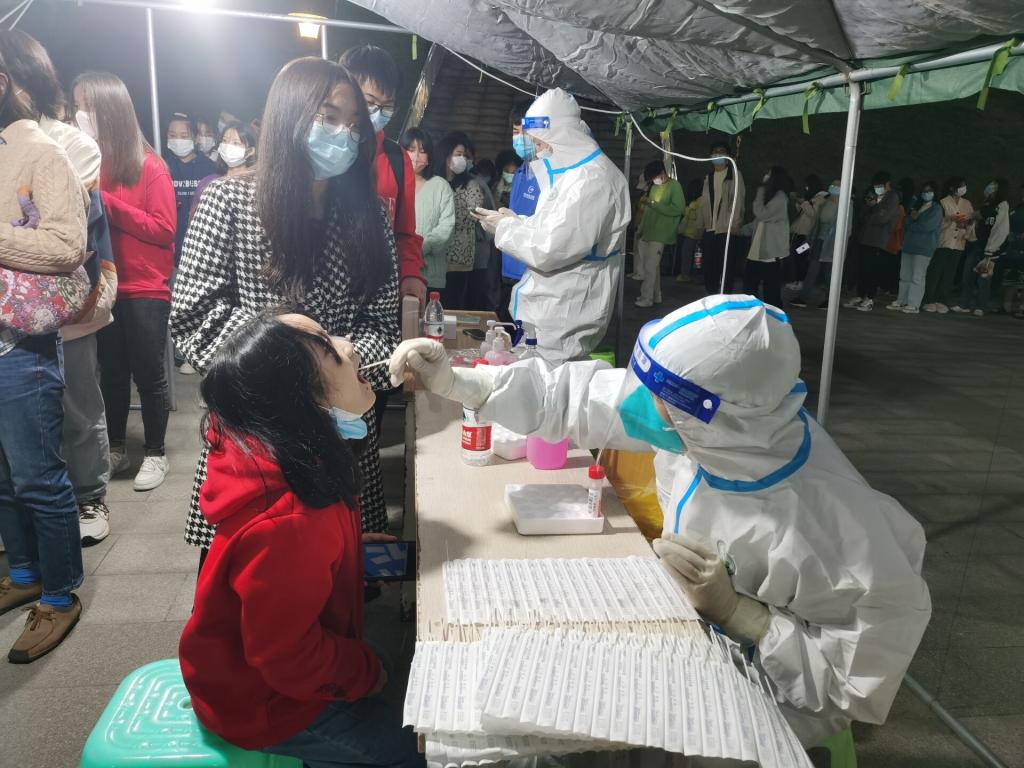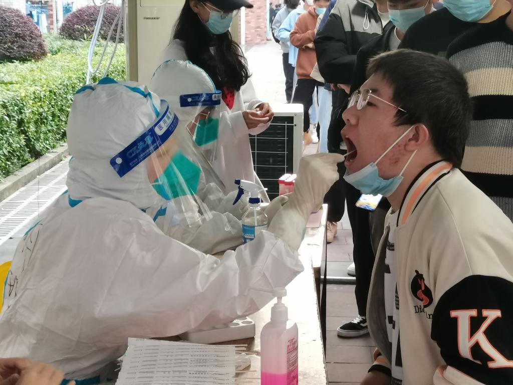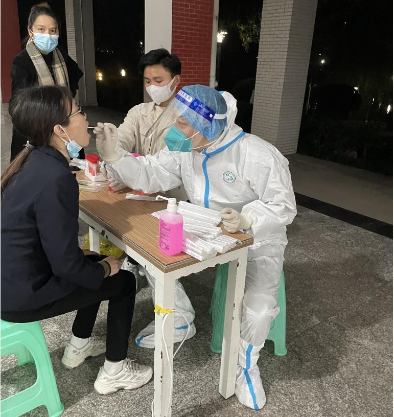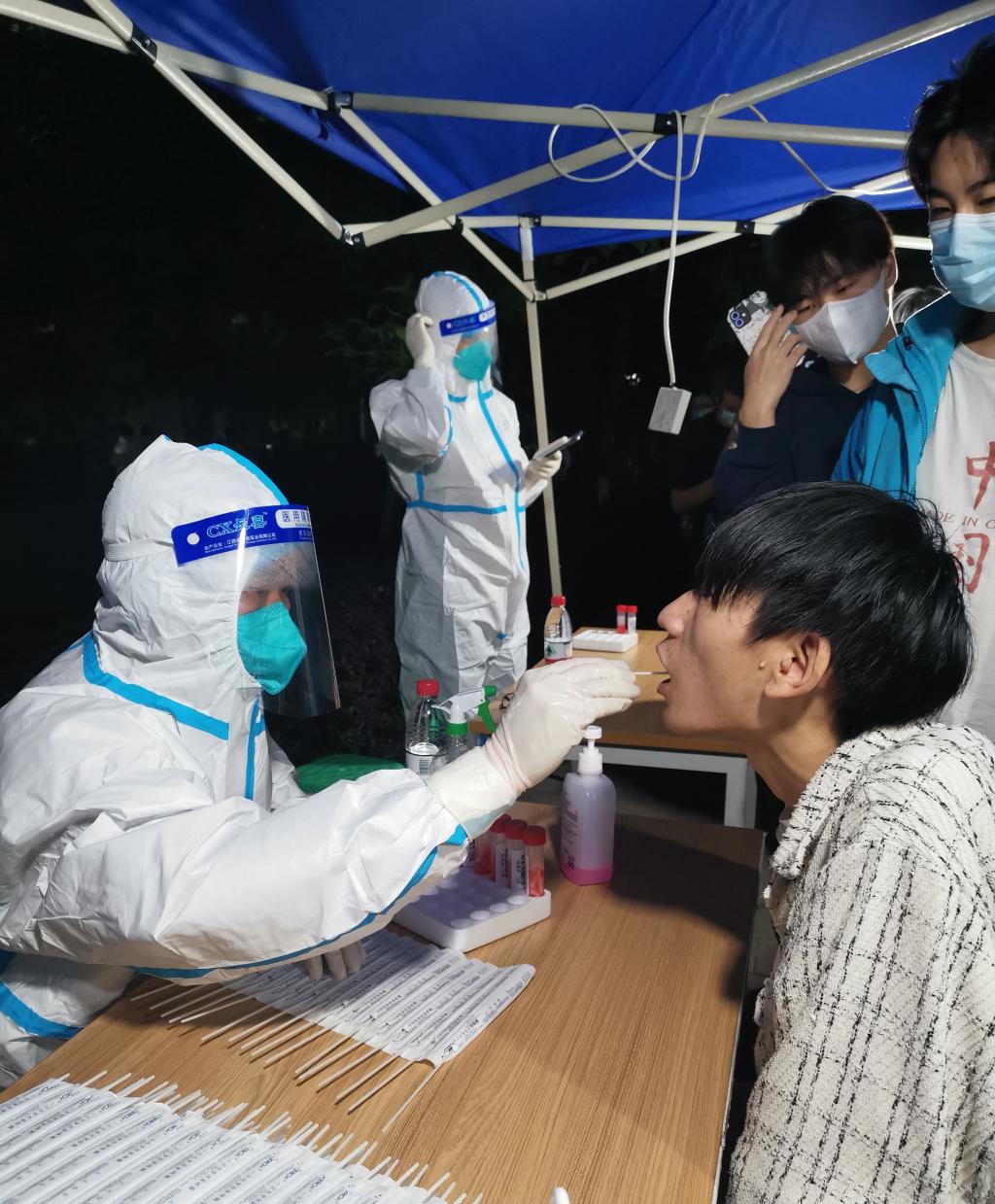 【供稿/党委宣传部】11月19日下午,合川校区核酸检测点秩序井然。14名特殊的“大白”小心翼翼又训练有素地忙着核酸采样工作。