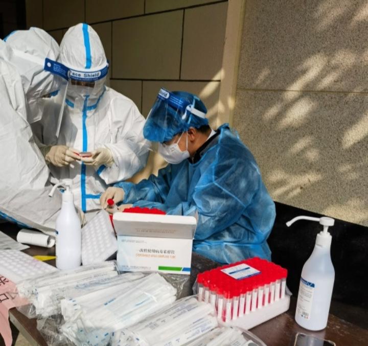 电子信息工程学院文武老师所在的小区被封控,一大早业主群里突然发布了一则志愿者征集消息,文武老师马上报名,赶到指定地点集合,根据社区防疫工作人员的安排,穿上防护服,戴上专业口罩和手套,腰间挂上两个袋子,装上测试剂和检测棉签,和医护人员一起,挨家挨户入户采集核酸。不漏一户,不落一人,采集两栋楼花了三四个小时。封箱脱下防护服后,吃上午饭已是下午三点左右。这是他第一次穿上“大白”,防护服密不透风,走路呼吸不畅,穿上后就不能脱,这样一干就是三天。经过三天当志愿者的经历,文武老师意识到这身厚厚的防护服,防护的不仅是自己也是别人,更是沉甸甸的责任。