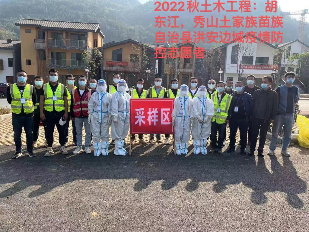 22年秋土木工程专业学生胡东江、21年春建设工程管理专业学生邹光镇、21春行政管理专业学生卢丹丹,自本次疫情发生以来一直奋战在一线,每天穿梭在小区楼栋之间,消杀毒、搬运物资、收集信息、带领大家核酸检测,每天的微信步数达数万步。