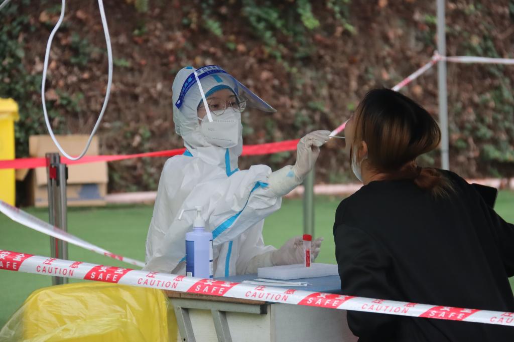 据悉,根据学校党委统一安排,华岩校区71名教师志愿者分两批次进行了严格的核酸采集培训,党委书记郭庆现场指导培训工作。培训过程中,来自专业医疗机构的医师向教师志愿者们细致讲述了防护服穿脱、咽拭子采集、七步消毒法等流程步骤,并就医疗废物打包、消毒、交接,样本的转运等标准进行了严格培训。23日当天,首批次10名志愿者率先上岗,经3小时规范操作,顺利完成当日全员核酸检测工作。
