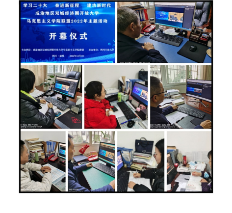 【供稿/远程教育中心】为深入学习宣传贯彻党的二十大精神,进一步发挥“优势互补、共赢发展”作用,加强两地三校思想政治理论课教师教学研讨,提升协同育人质量,成渝地区双城经济圈开放大学马克思主义学院联盟举办了2022年“学习二十大 奋进新征程 建功新时代”主题活动。我校党委副书记周曦出席会议并致辞,办学体系40余所基层办学单位的思政课教师、教学管理人员等共计538人在线参加会议。