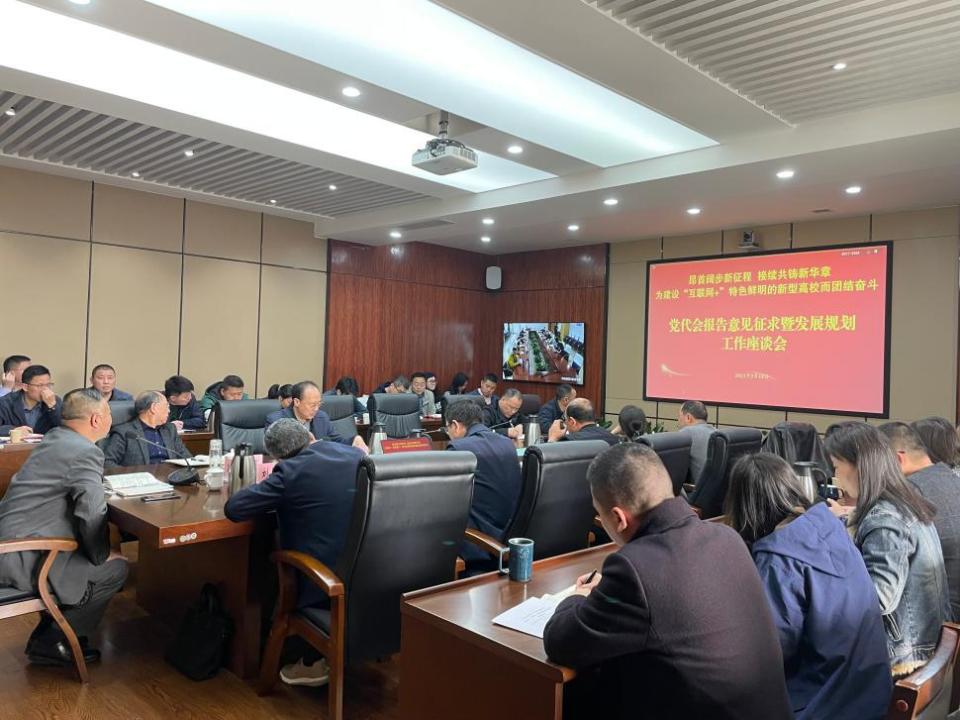 【供稿/党委宣传部】3月15日下午,学校召开党代会报告意见征求暨发展规划工作座谈会。党委书记郭庆、校长李国、党委副书记周曦、副校长胡继明、副校长刘昌雄、副校长胡方霞、纪委书记杨寿康,党委委员、党政办主任南旭光,党委委员、党委组织部部长王剑华出席会议,党政职能部门科级以上干部及相关同志参加会议。会议由郭庆书记主持。