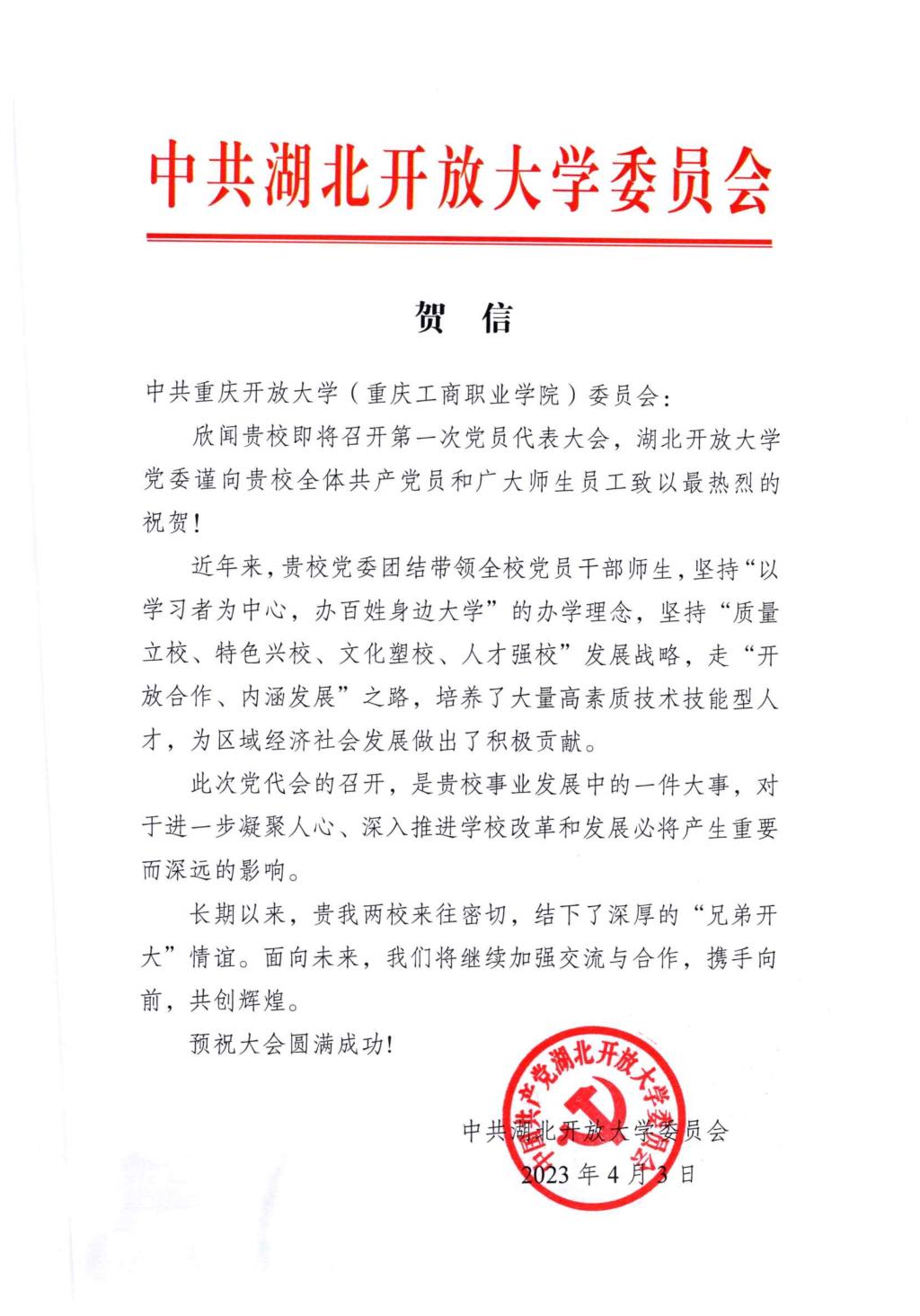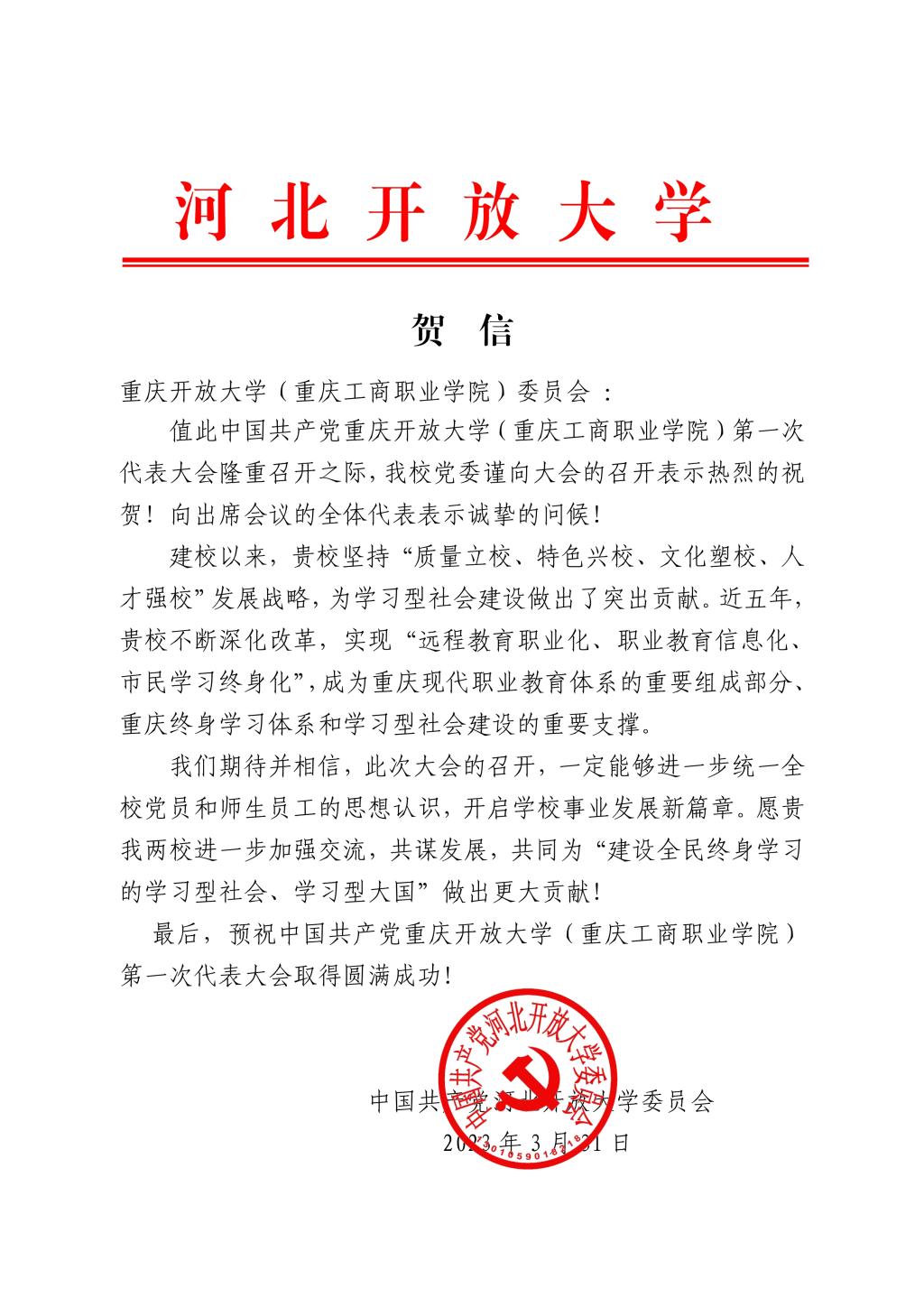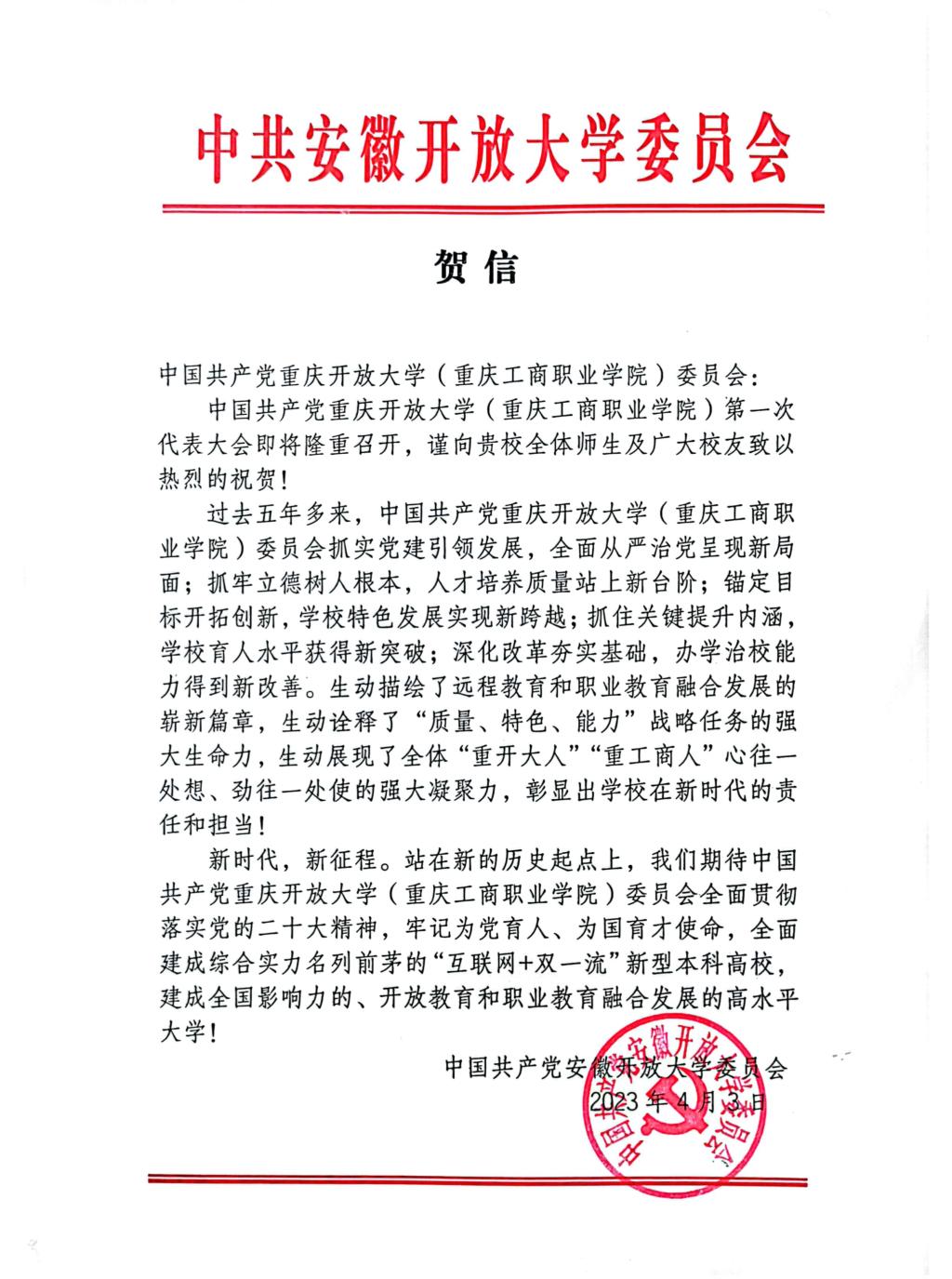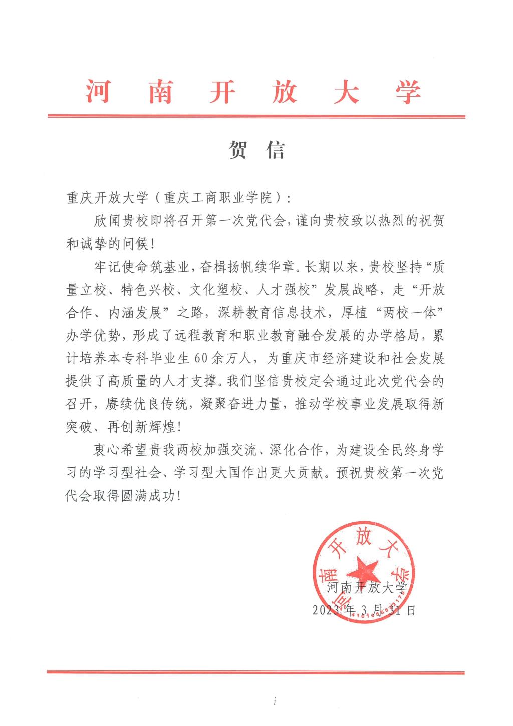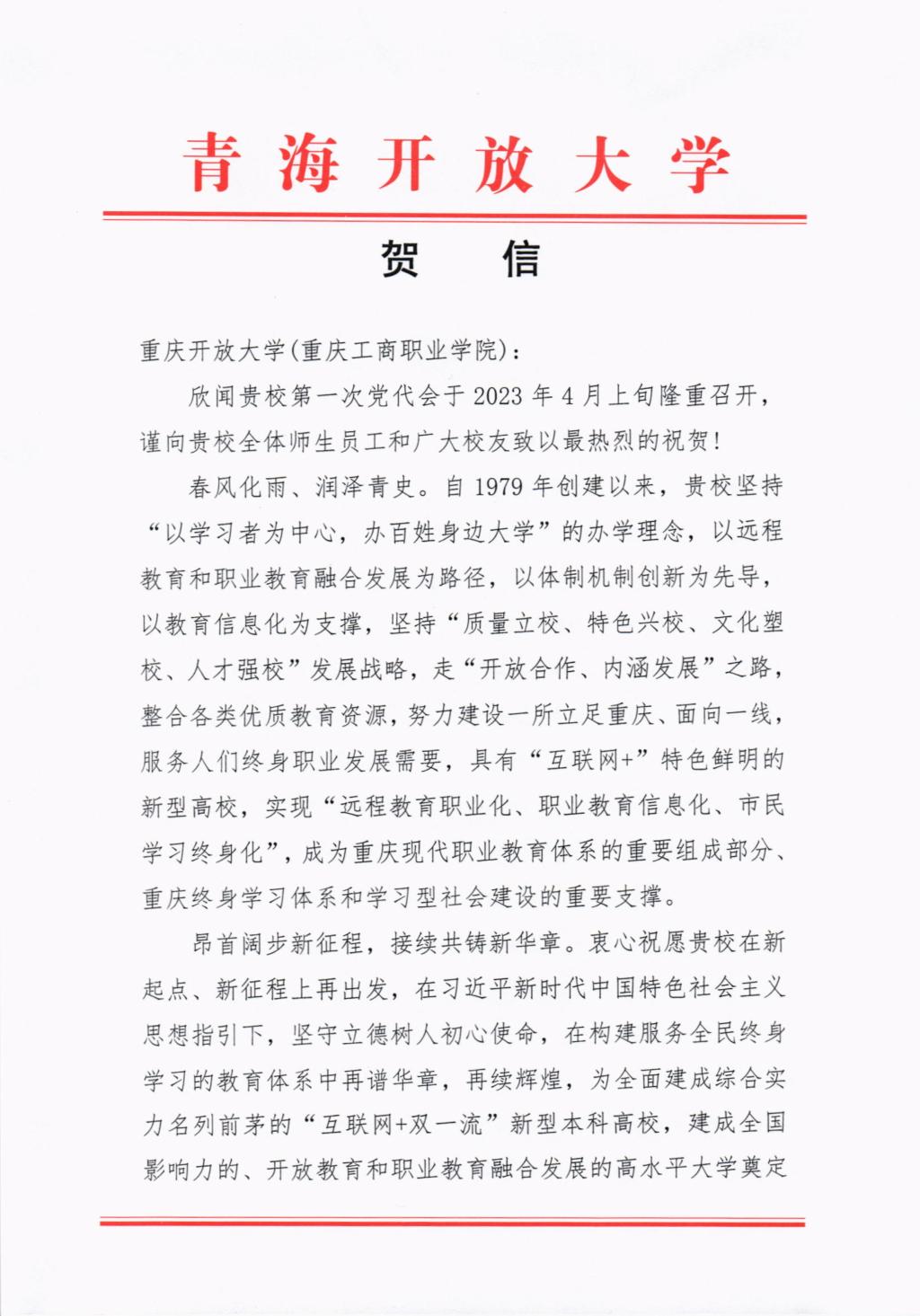 【组稿/党委宣传部】近日,在我校第一次党代会召开之际,省内外兄弟院校纷纷发来贺信,向我校全体党员和师生致以诚挚问候,对我校五年以来取得的成绩表示祝贺,并表达了进一步加强交流合作的意愿,祝愿我校在新的办学征程中取得新的更大成绩,预祝大会取得圆满成功。
