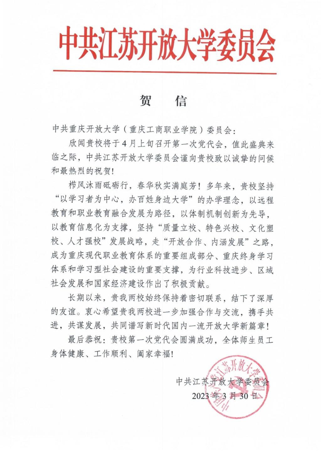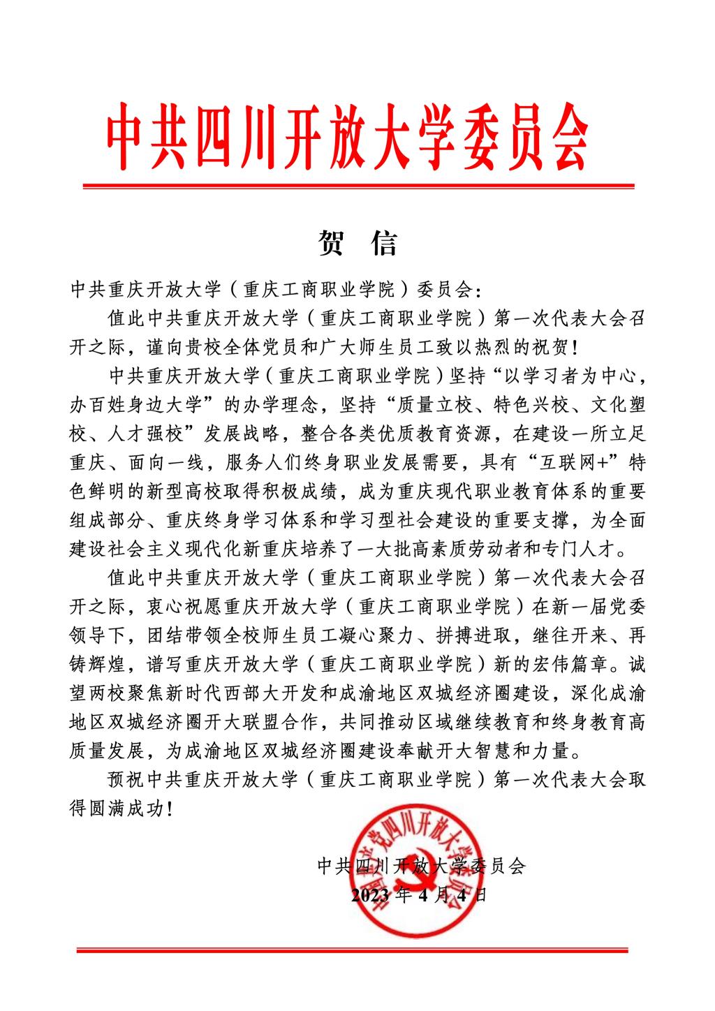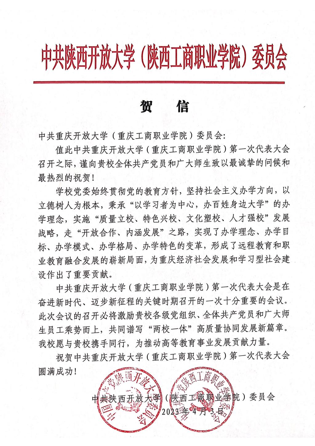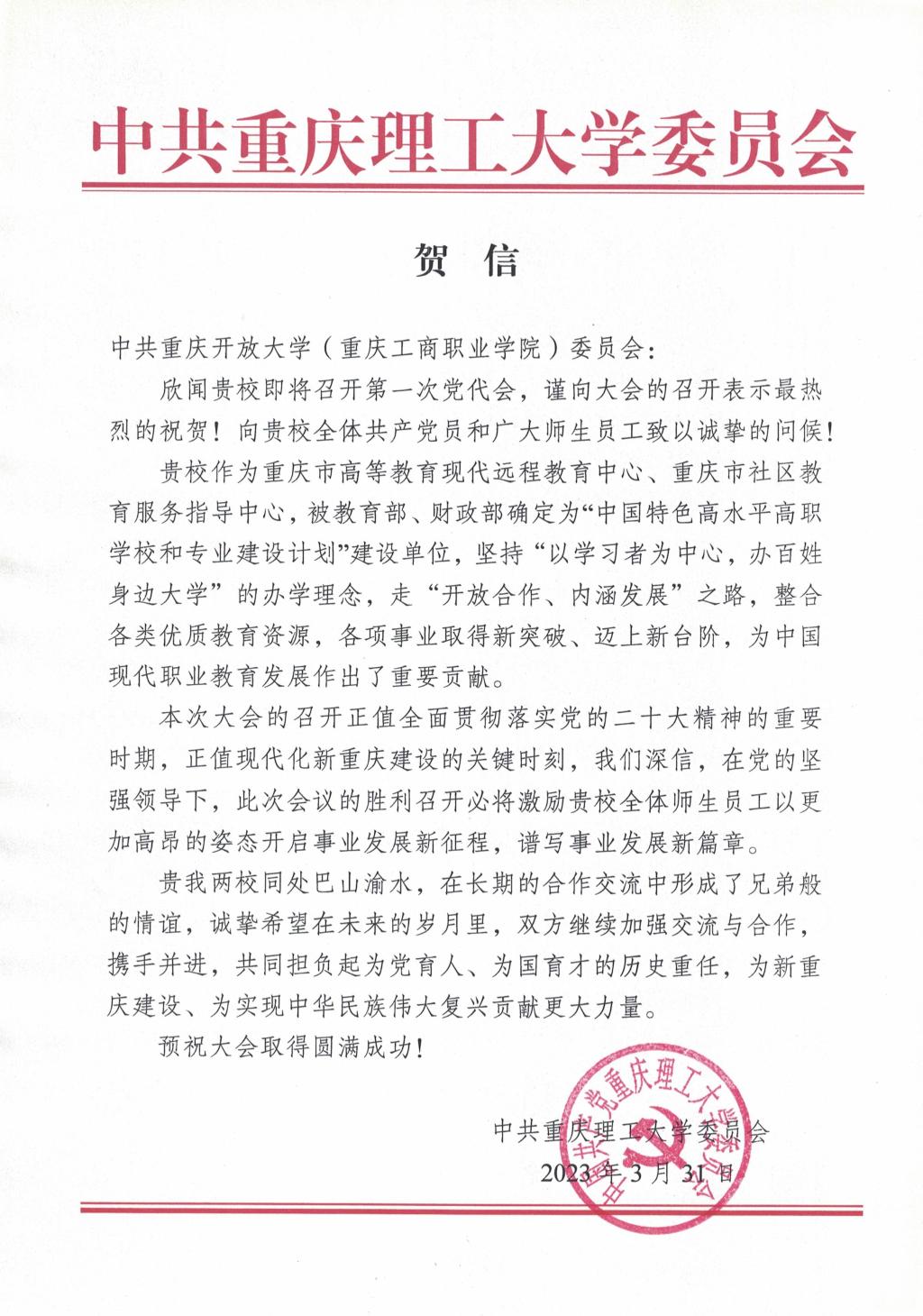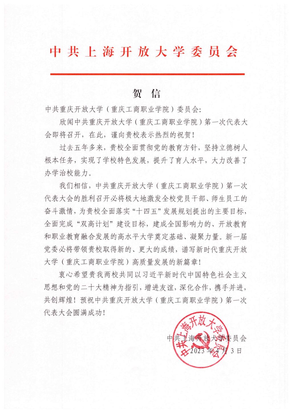【组稿/党委宣传部】近日,在我校第一次党代会召开之际,省内外兄弟院校纷纷发来贺信,向我校全体党员和师生致以诚挚问候,对我校五年以来取得的成绩表示祝贺,并表达了进一步加强交流合作的意愿,祝愿我校在新的办学征程中取得新的更大成绩,预祝大会取得圆满成功。