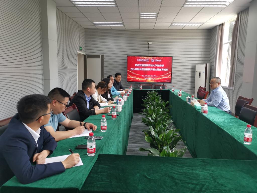 【供稿/继续教育学院】4月27日上午,国家开放大学教务部部长古小华在重庆分部开展学习贯彻习近平新时代中国特色社会主义思想主题教育调研。我校行政管理专业教学团队成员及远教中心、马克思主义学院、继续教育学院负责人及相关管理人员参加了调研会。