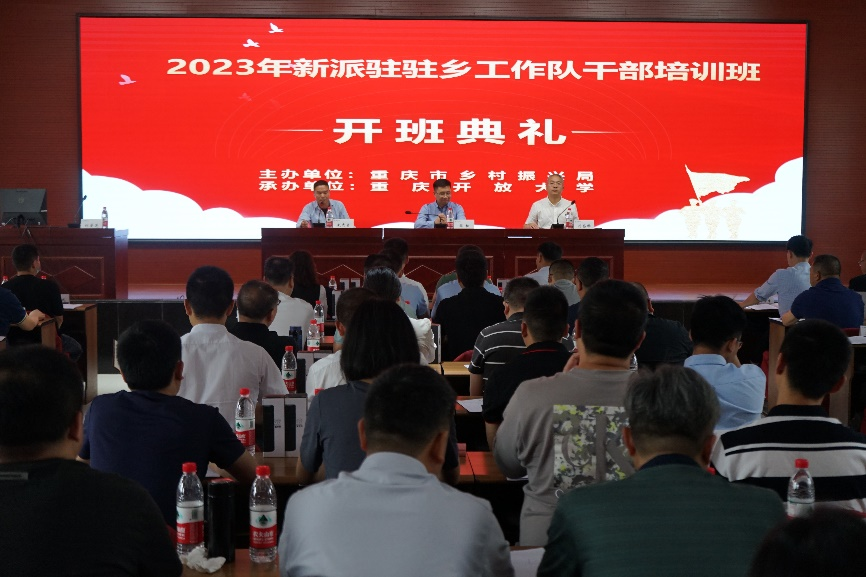 【供稿/继续教育学院】5月15日,2023年新派驻乡工作队(第一期)干部培训在我校正式开班。来自市级帮扶集团选派的驻乡工作队及区县部分驻乡工作队的78名干部参加了培训。重庆市乡村振兴局副局长周松、重庆市乡村振兴局二级调研员庞志勇、我校副校长刘昌雄出席开班仪式。