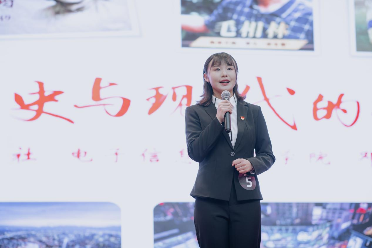 来自习近平新时代中国特色社会主义思想学习社的邓佳同学以“城门城门几丈高,三十六丈高,骑马马坐轿轿,城门底下走一遭”为引,以“红岩上红梅开,千里冰霜脚下踩”吹响奋进的号角,结合赵世炎、江竹筠红岩英烈故事,邓徽绩、卢作孚实业救国故事,毛相林、王红旭凡人英雄故事等,号召师生牢记习近平总书记对重庆的殷殷嘱托,从重庆的历史进步中汲取经验,为重庆奏响高质量发展新乐章贡献青年力量。