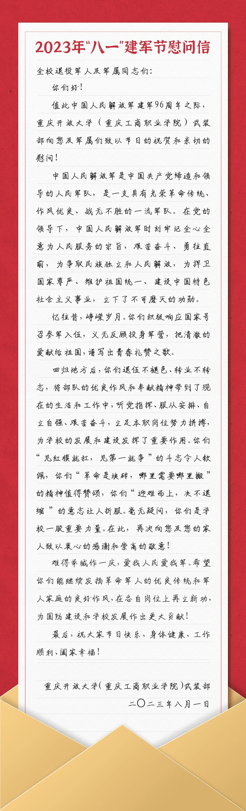 八一建军节|致全校退役军人及军属同志们的一封信