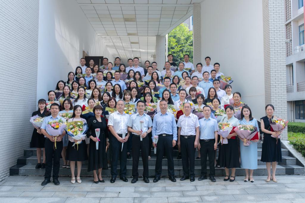 郭庆书记向全体教职工分享了“甘为人梯”“知行合一”“紧跟时代”三个关键词。他指出,要以人民教育家为榜样,牢固树立“躬耕教坛,强国有我”的志向抱负,继续秉持“成就学生、淡泊名利,严谨治学、求真求实,教育报国、振导社会”的教师团队建设灵魂,以扎实的专业功底、勤勉的教学态度、有效的教学方法、精湛的技术技能,努力成为数字化时代学习的引领者,勇当数字化转型的攻坚者。