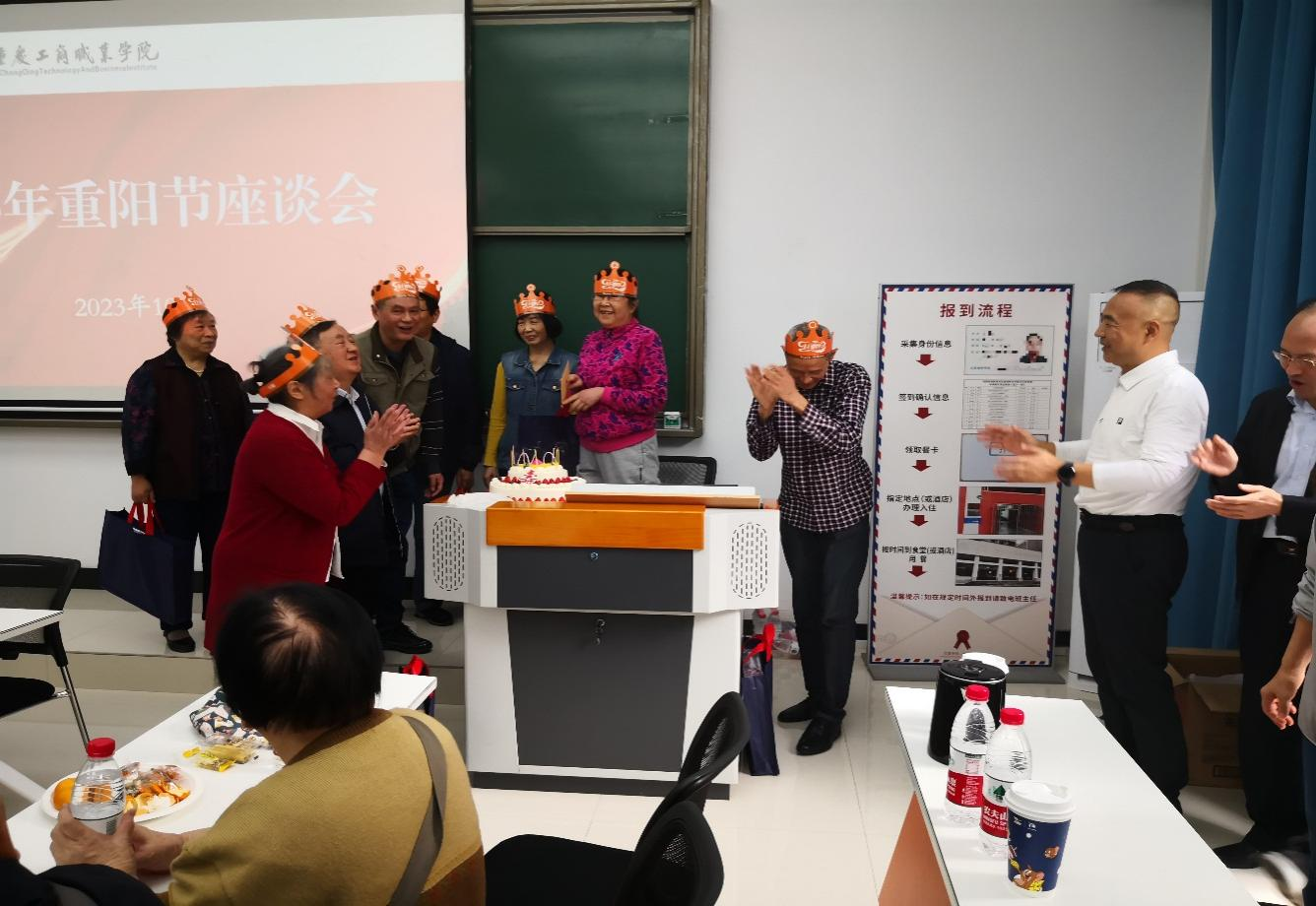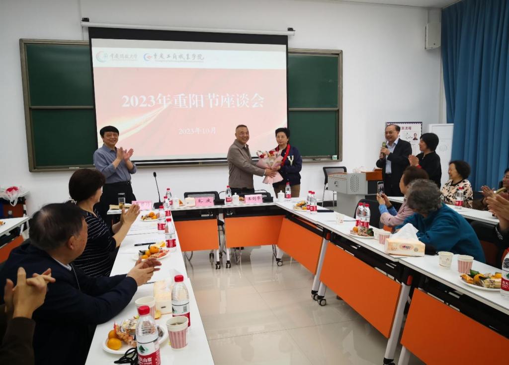 【供稿/校工会】10月23日,农历九月九重阳节,近80名离退休老同志相聚石桥铺校区,共同庆祝属于自己的节日。党委书记郭庆,党委委员、党委组织部部长王剑华及相关部门工作人员与老同志们相聚一堂,开展重阳节座谈。