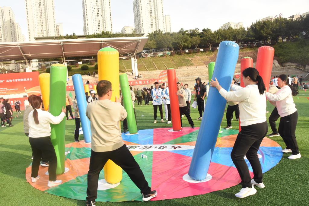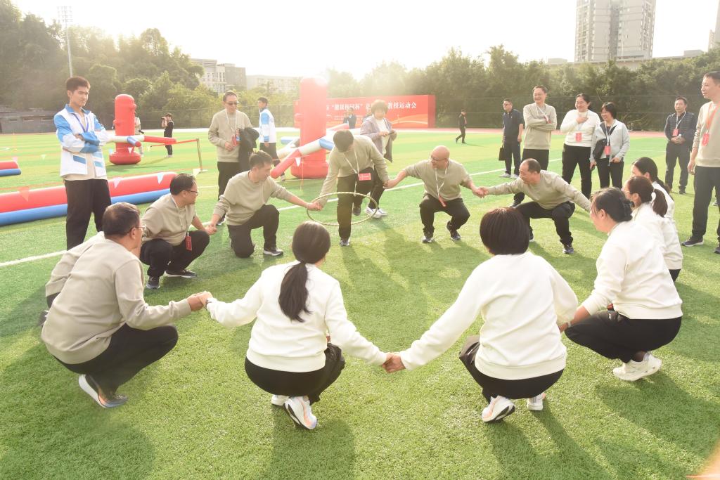 开幕式入场,我校代表队身着统一服装,步伐矫健。随后进行了第九套广播体操展演,专家教授们精神抖擞,动作整齐,充分展现了积极向上的精神风貌。正式比赛环节,专家教授们先后完成了智传呼啦圈赛、超级障碍赛、欢乐龙舟赛及火炬传递赛。场上队友奋勇争先、顽强拼搏,场下队友加油鼓劲、激情洋溢,在欢声笑语中加强了情感沟通,放松了身心,展示了良好的团队风采。
