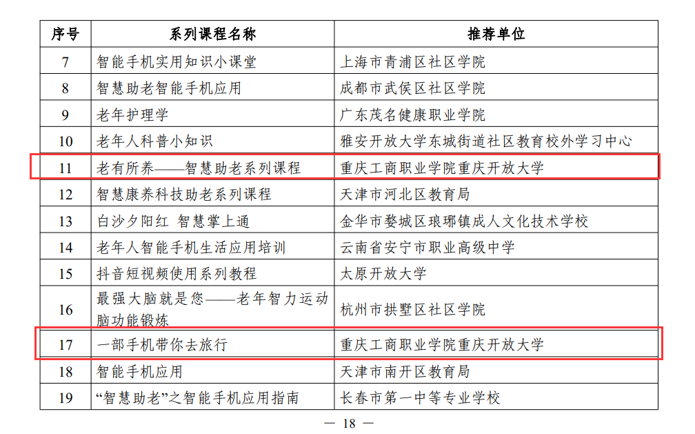 【供稿/终身教育中心】 近日,在教育部组织的2023年全国“社区教育品牌课程”推介工作上,我校社区教育品牌课程《一部手机带你去旅行》和《老有所养-智慧助老系列课程》被予以推介。