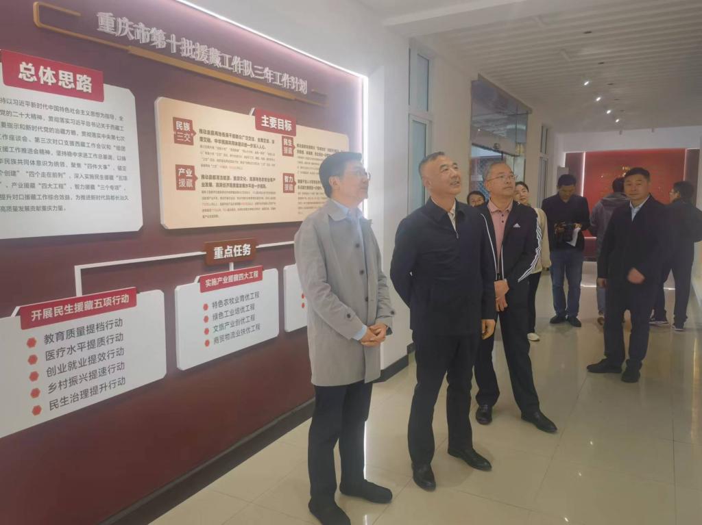 在重庆援藏队驻地,郭庆书记和第十批援藏干部亲切交流,详细了解援藏队的工作和生活,高度赞赏援藏队远离家乡、克服高寒缺氧困难扎根西藏工作的勇气和情怀,表示要将老西藏精神(特别能吃苦、特别能战斗、特别能团结、特别能忍耐、特别能奉献)和援藏队“四个比”精神带回学校,传递给全校师生员工。