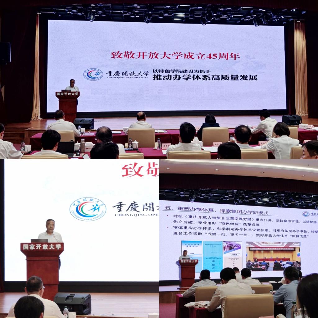 我校党委书记郭庆教授受邀在大会上作专题发言。郭书记以“以特色学院建设为抓手推动办学体系高质量发展”为题,从“找准办学定位,扎根新时代新重庆;开发特色课程,增强人才培养针对性;加快数字转型,提升开放教育能力;服务地方发展,做实高等教育功能;重塑办学体系,探索集团办学新模式”五个方面进行了介绍。他表示,重庆开放大学将站在新的历史起点,坚持以习近平总书记关于教育的重要论述为工作总遵循,回应好“教育强国,开大作为”和“开放教育与学习型社会关系”两大时代命题,按照“一体化、专业化、数字化、本地化”的工作思路,扎根巴渝大地,服务重庆发展,主动在中国式现代化宏大场景中谋划推进各项工作,积极为新时代新征程新重庆和教育强国建设贡献智慧和力量。