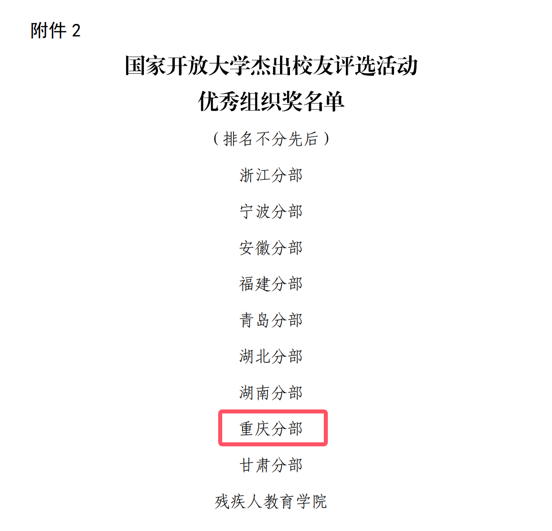【供稿/远程教育处】近日,国家开放大学办学体系杰出校友评选结果揭晓。据悉,本次全国开大体系共有47所分部及相关学院参加评选,国家开放大学最终从576名候选人中评选出328名杰出校友,我校14名毕业生荣获“国家开放大学杰出校友”称号,同时我校获得“优秀组织奖”。