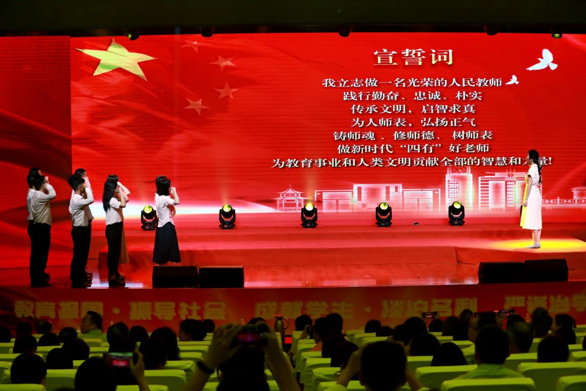 与会领导为获得教书育人楷模、优秀教师、优秀教育工作者、教学先进工作者、优秀班主任等受表彰教师颁发荣誉证书,学生向老师们敬献鲜花,并送上诚挚的祝福。