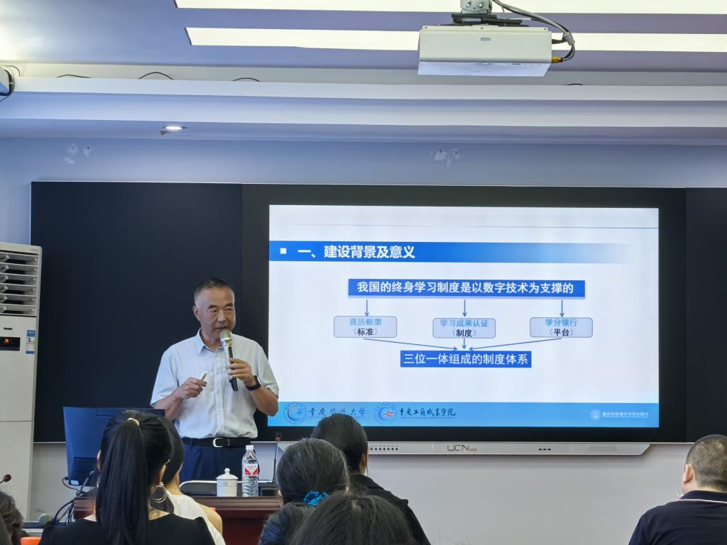 【供稿/终身教育处(学分银行管理中心)、继续教育学院】近日,2024年重庆市学分银行分中心建设管理能力提升培训班开班。学校党委书记郭庆为学员授课,主题为《重庆学分银行与资历框架建设报告》。
