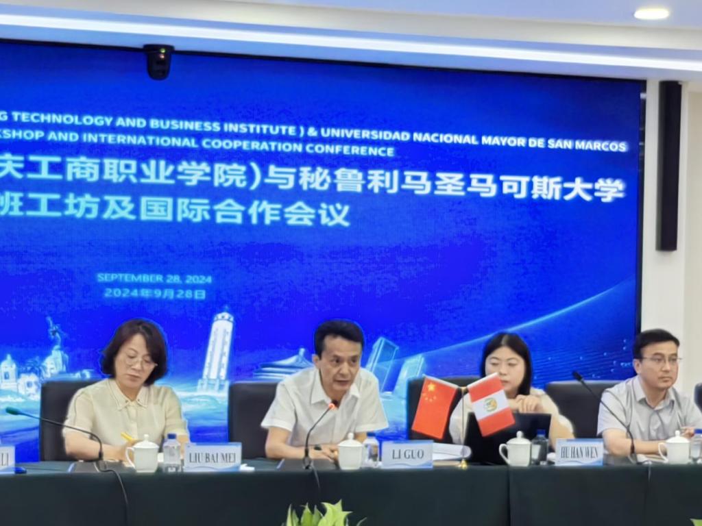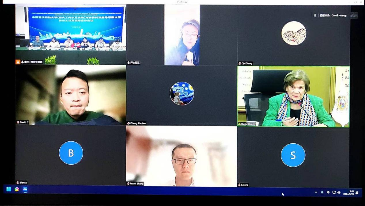 会上,重庆长安汽车股份有限公司中南美洲事业部技术培训专家张望先生代表项目合作企业方,向与会嘉宾展示公司在海外市场的业务布局和发展计划。三方就如何结合各自优势资源、共同推进鲁班工坊的建设交换意见,并在多个方面达成初步共识。会议期间,还重点讨论了我校师生赴秘鲁短期交流计划以及我校针对秘方师生计划开展的以数字经济为主题的短期线上/线下培训项目。