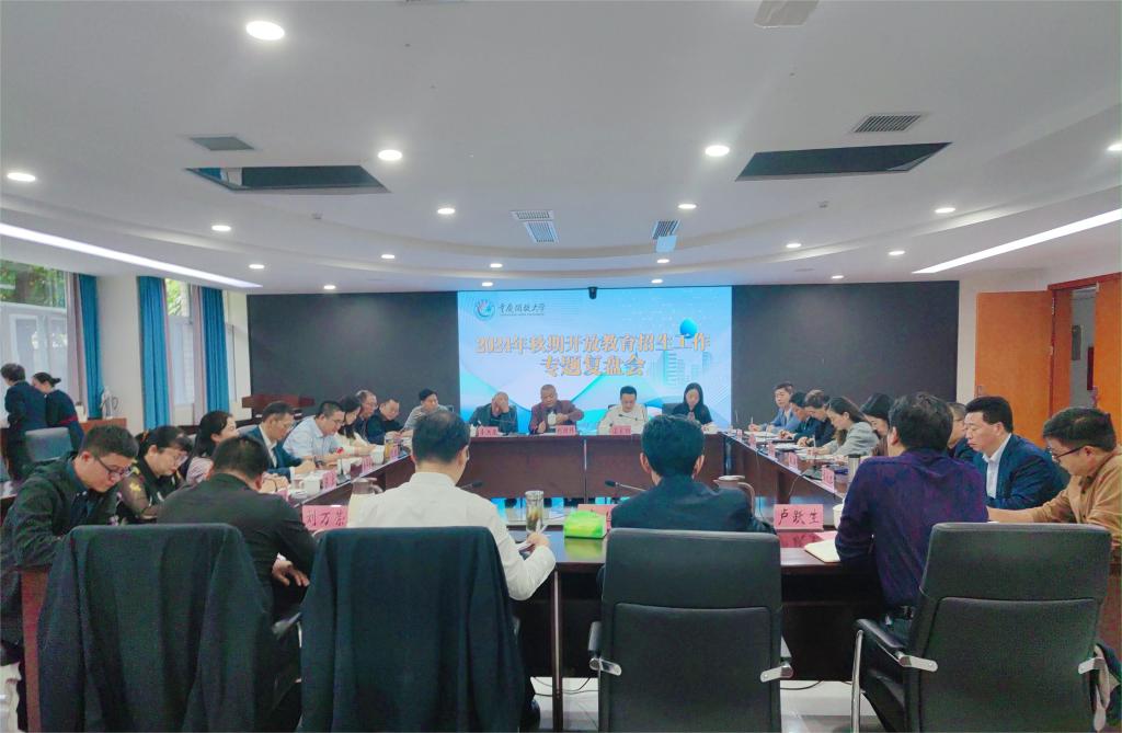 【供稿/远程教育处】10月18日,学校在华岩校区召开2024年秋季学期招生复盘工作会。党委副书记、校长李国,党委委员、副校长南旭光出席会议并讲话。部分基层办学单位负责人、分管领导及远程教育处相关人员参加会议。