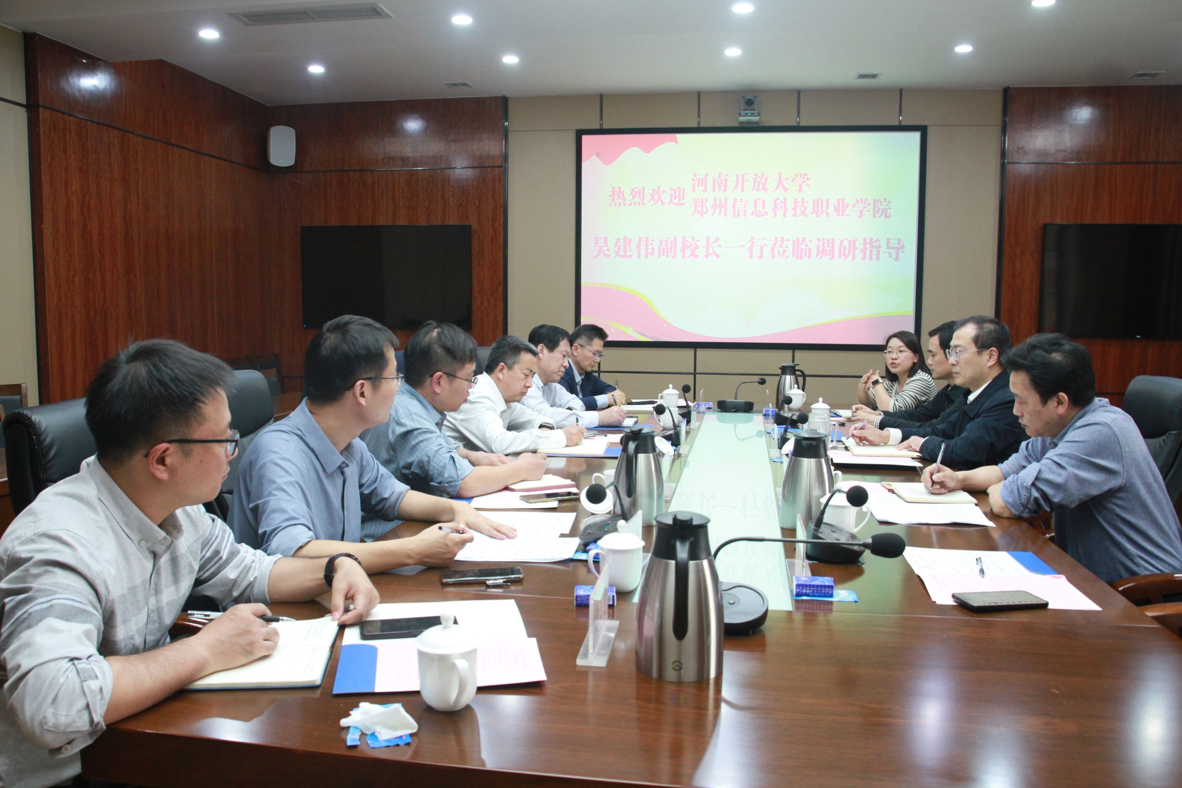 【供稿/党政办】10月23日下午,河南开放大学副校长吴建伟一行来校调研交流。学校党委委员、副校长南旭光和相关单位负责人接待并参加座谈。