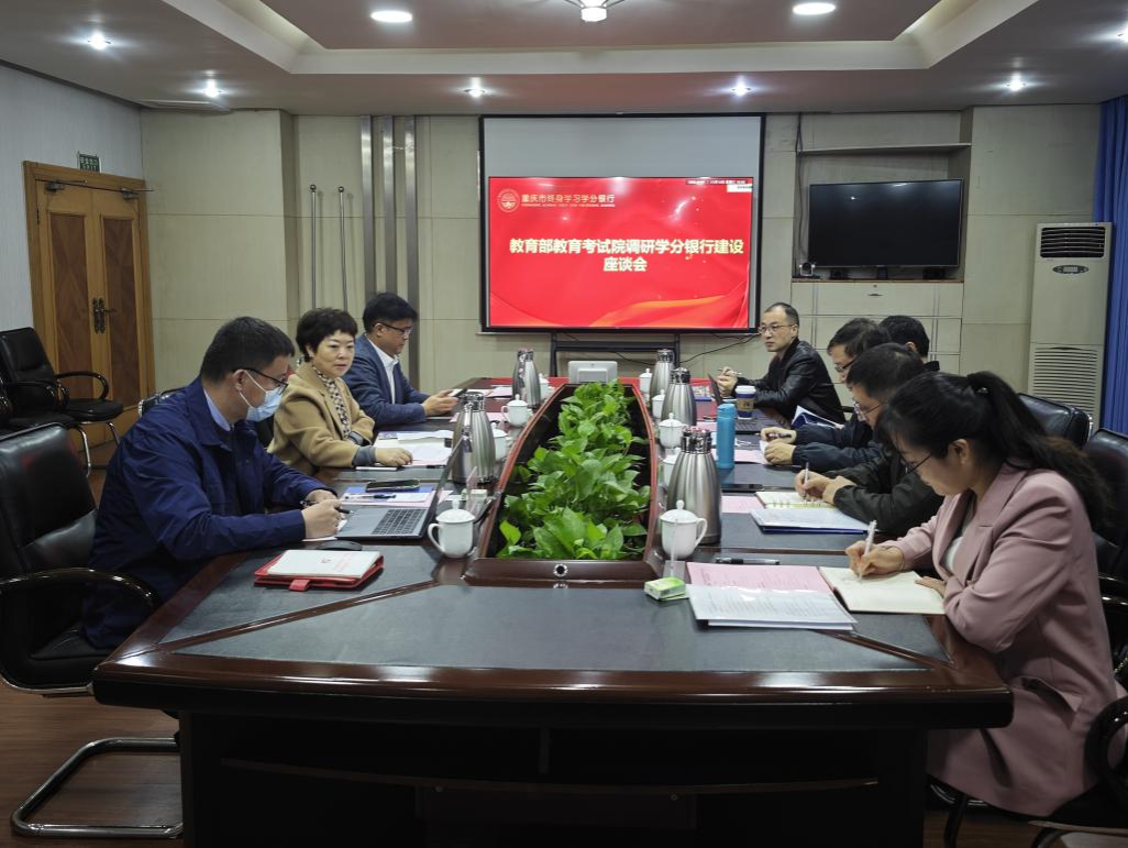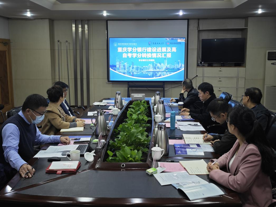 谢义华副校长代表学校对专家组的到来表示热烈欢迎,并详细介绍学校校史校情、重庆市学分银行建设创新发展成果,以及学分银行服务自学考试工作基本情况。终身教育处(学分银行管理中心)相关工作人员介绍重庆市学分银行建设典型应用。教育部教育考试院专家组肯定我校学分银行建设工作,并介绍全国自学考试发展现状及改革创新相关情况。