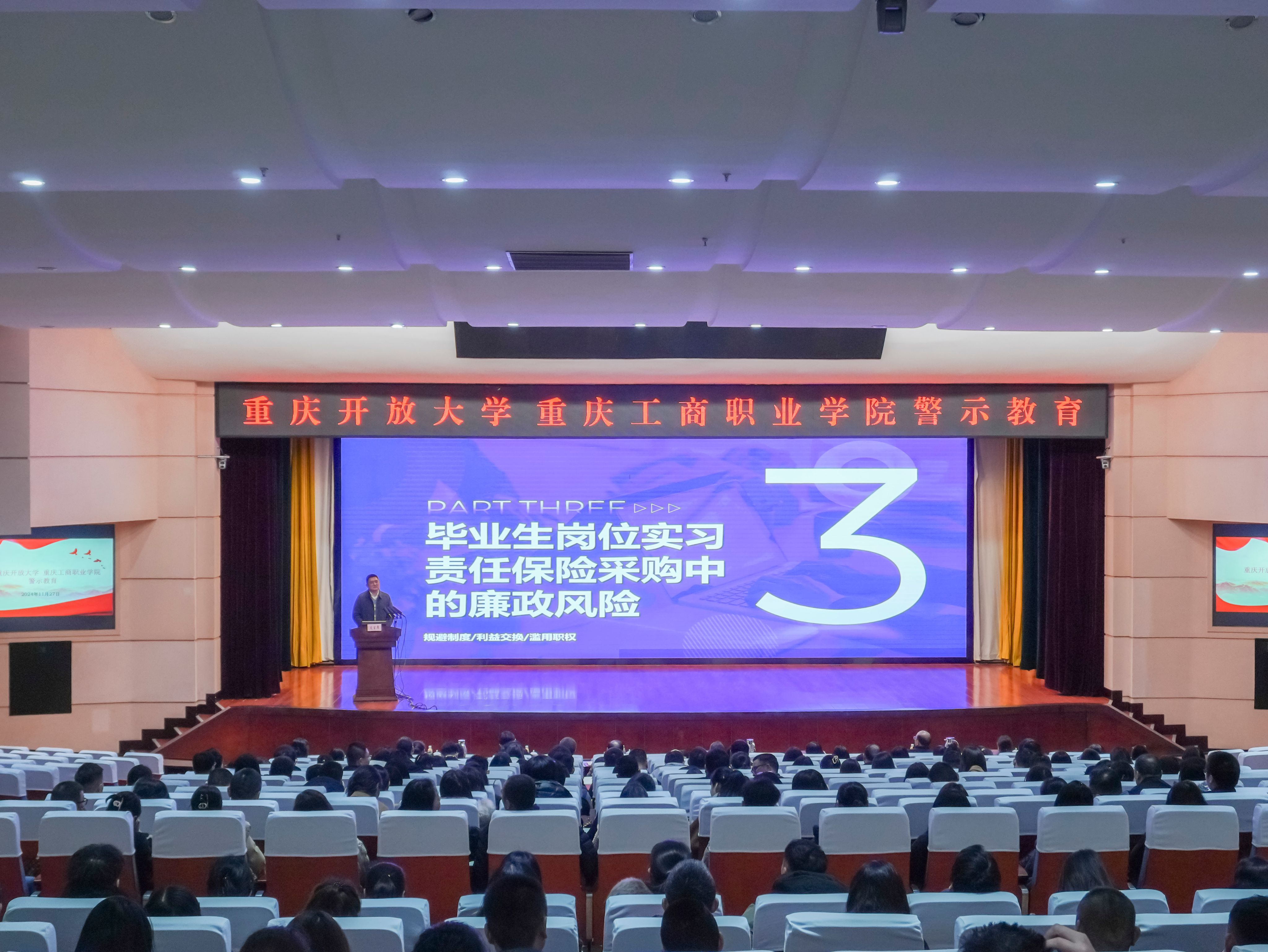 【供稿/纪检监察室】为深入学习贯彻党的二十届三中全会精神,常态化开展党纪学习教育,进一步推进清廉学校建设走深走实,11月27日,学校党委、纪委在合川校区召开清廉学校建设监督推进会暨纪检监察干部培训会。党委委员、纪委书记、监察专员杨寿康主持会议,党委委员、党委组织部部长王剑华,校纪委委员、近两年新提拔干部、新进教师、关键岗位、专兼职纪检监察干部参加会议。