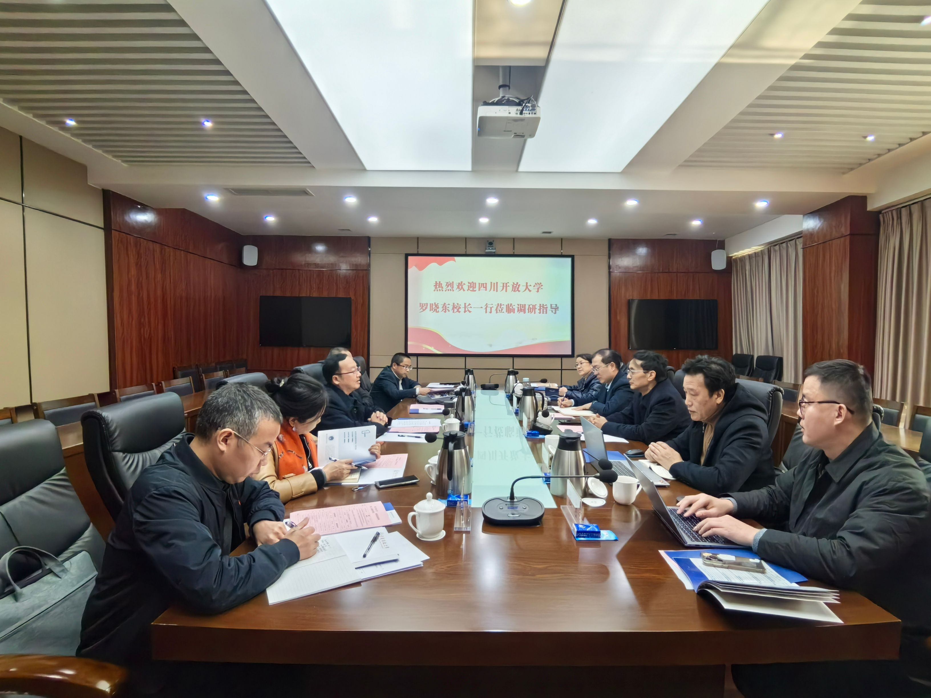 【供稿/党政办】12月11日,四川开放大学党委副书记、校长罗晓东一行6人来校调研。李国校长、南旭光副校长热情接待并与客人亲切座谈。