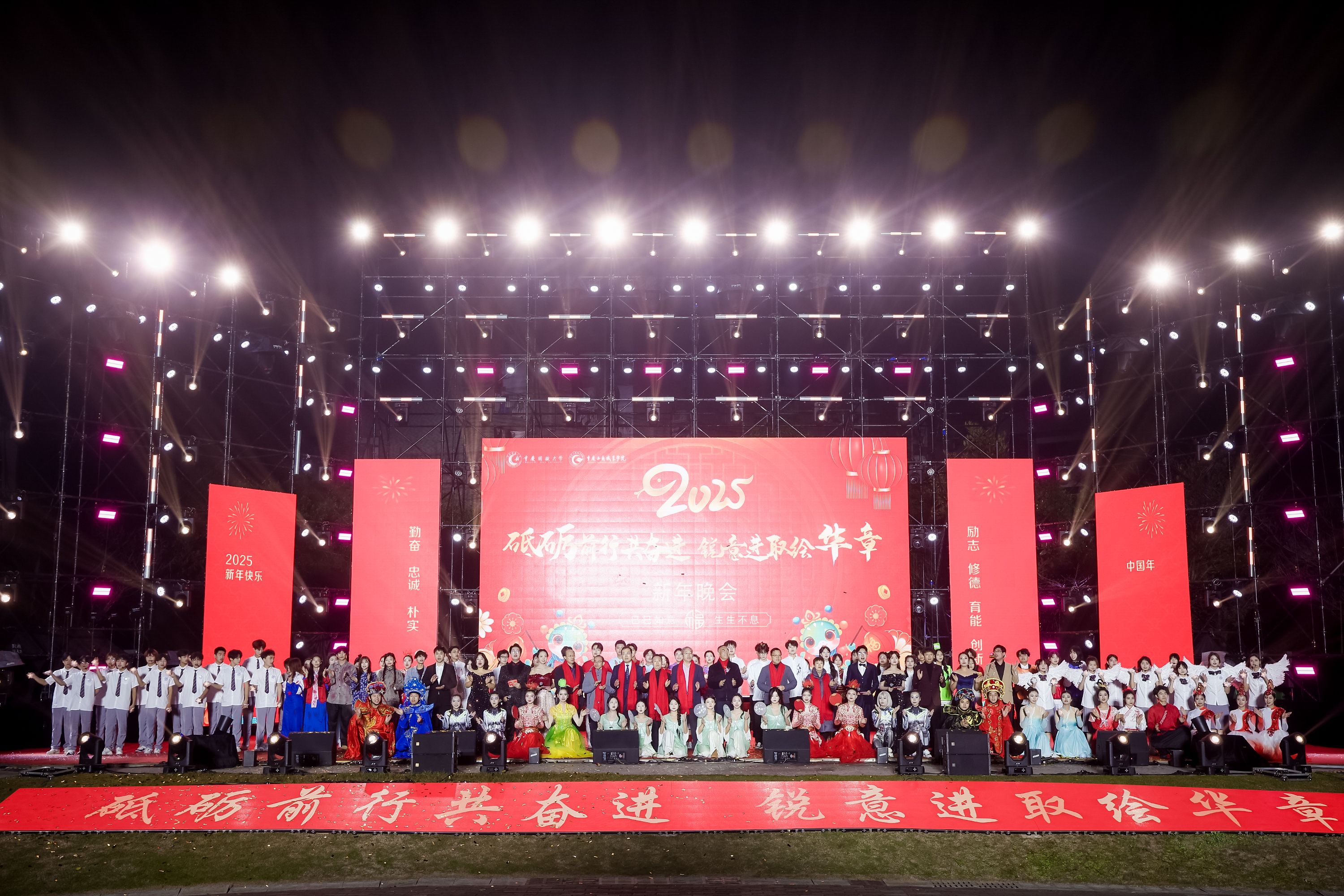 【供稿/校团委】12月27日晚,“砥砺前行共奋进 锐意进取绘华章”2025新年晚会在合川校区桔园文化广场举行。全体校领导,各二级学院党政领导、相关职能部门负责人及师生代表近2000人欢聚一堂,喜迎新年。