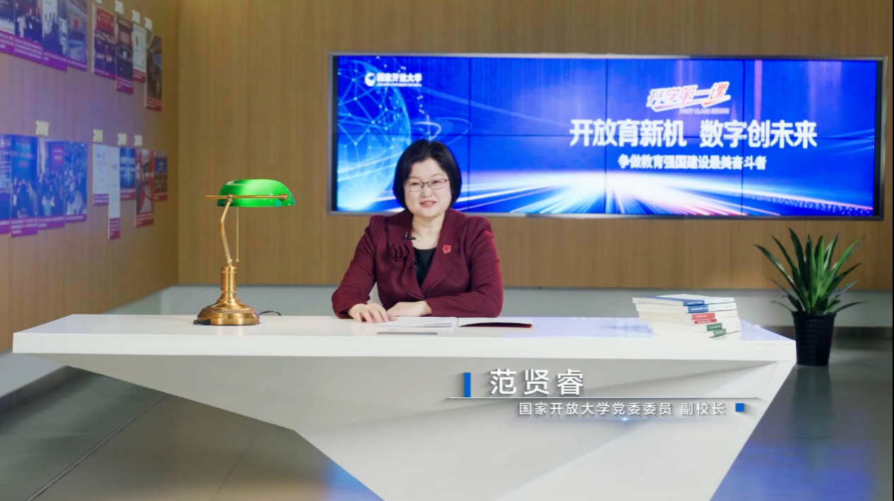 范贤睿围绕“国家开放大学的重要成就、未来前景和如何成为优秀的国开毕业生”三个核心问题,分“来时路、新使命和再出发”三个篇章展开讲授。首先,她回顾了国家开放大学46年的发展历程及辉煌成就,重温“来时路”的坚实步伐。其后,她结合当前数字化时代的特点阐述学校“1234”发展战略,并强调数字化是开放大学高质量发展的核心引擎,正引领开放教育迈向“新使命”的征程。最后,她号召全体国开学子做数字时代的终身学习者、产业升级的技能领跑者、社会进步的创新实践者、文化传承的美丽使者,整装“再出发”,共同续写国家开放大学辉煌历史新篇章。