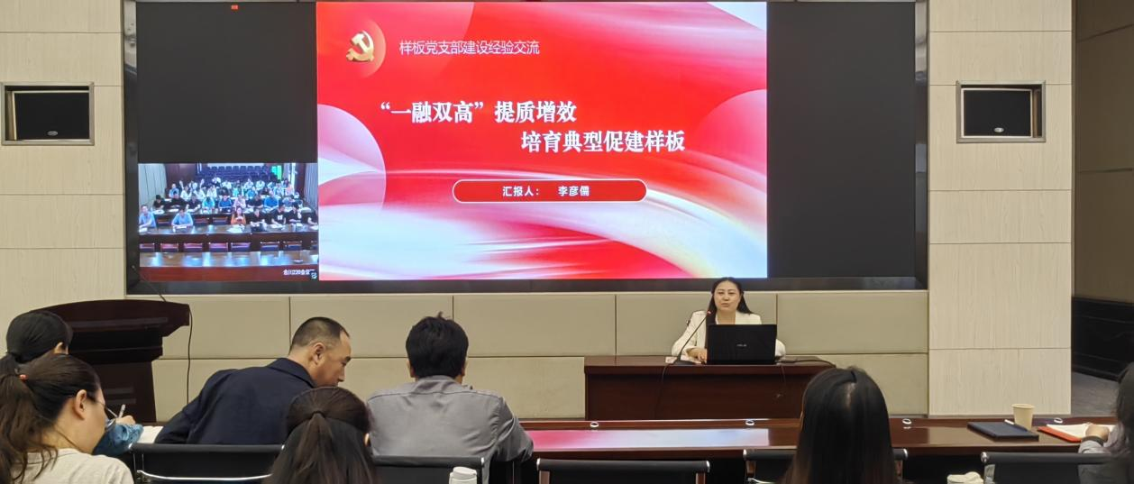 我校“全国党建工作样板支部”培育创建单位——电子信息工程学院教工支部,以“一融双高提质增效 培育典型促建样板”为题,就样板支部建设思路、思考和经验作了分享。