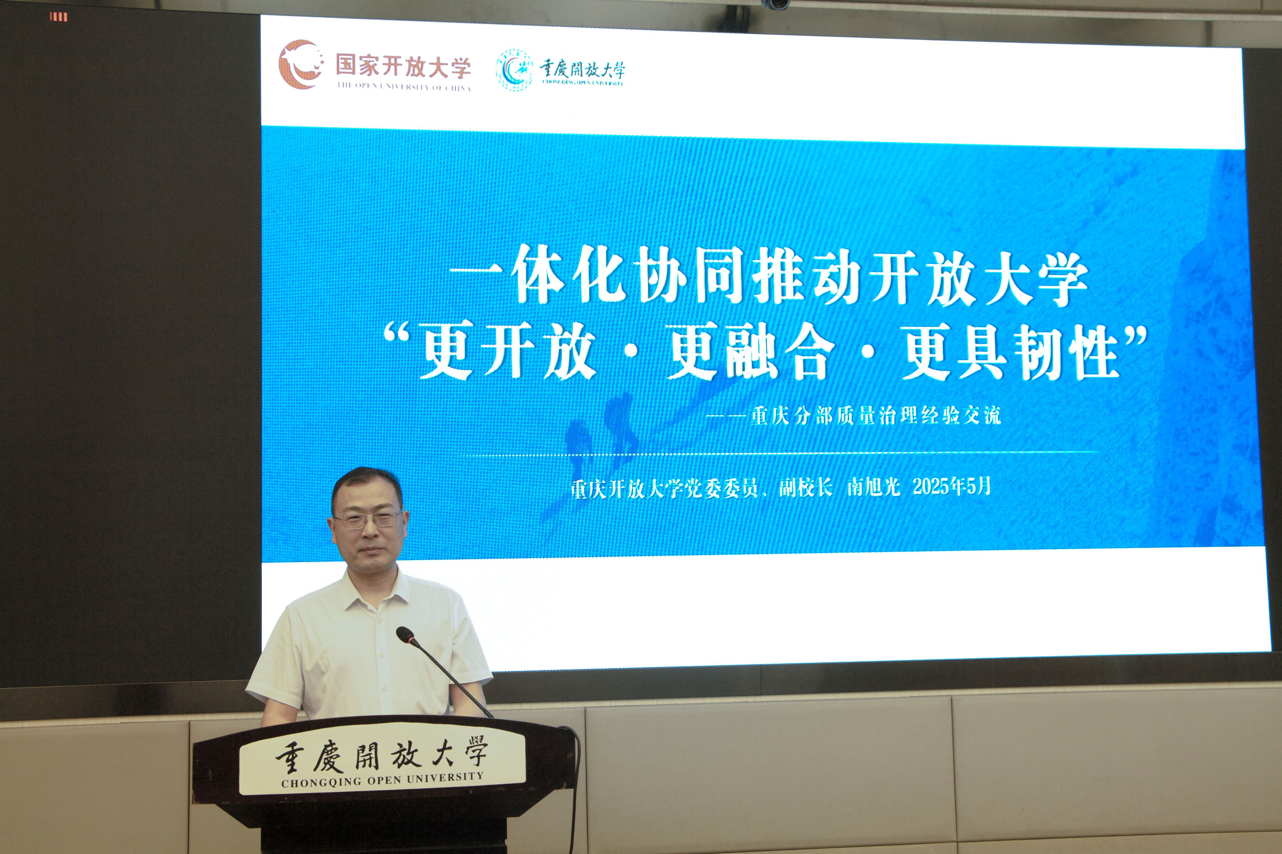 【供稿/远程教育处】5月16日,国家开放大学召开2025年质量监控工作部署视频会,44所省级开放大学在分会场参加会议。学校党委委员、副校长南旭光受邀就重庆开放大学质量治理工作作交流发言。