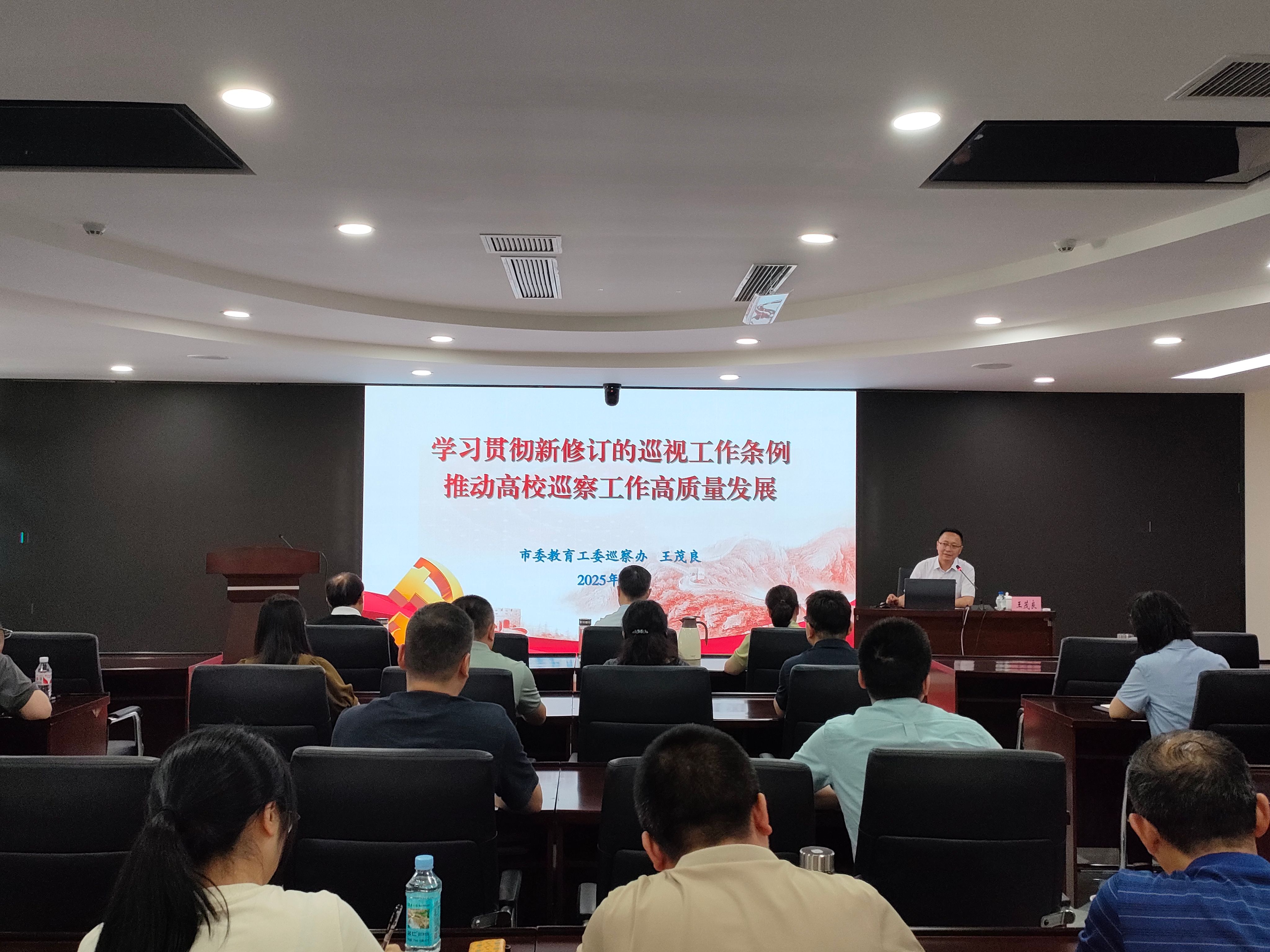 王茂良以《学习贯彻新修订的巡视工作条例,推动高校巡察工作高质量发展》为题,从怎么看、巡什么、怎样巡三个方面,对如何把握党中央及市委关于巡视巡察工作的新要求,如何掌握高校政治巡察的监督重点,如何提升高校现场巡察的工作质效等方面进行了详细讲解。