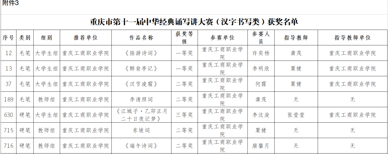 据悉,重庆工商职业学院3项作品被选送参加第七届中华经典诵写讲大赛全国总决赛。